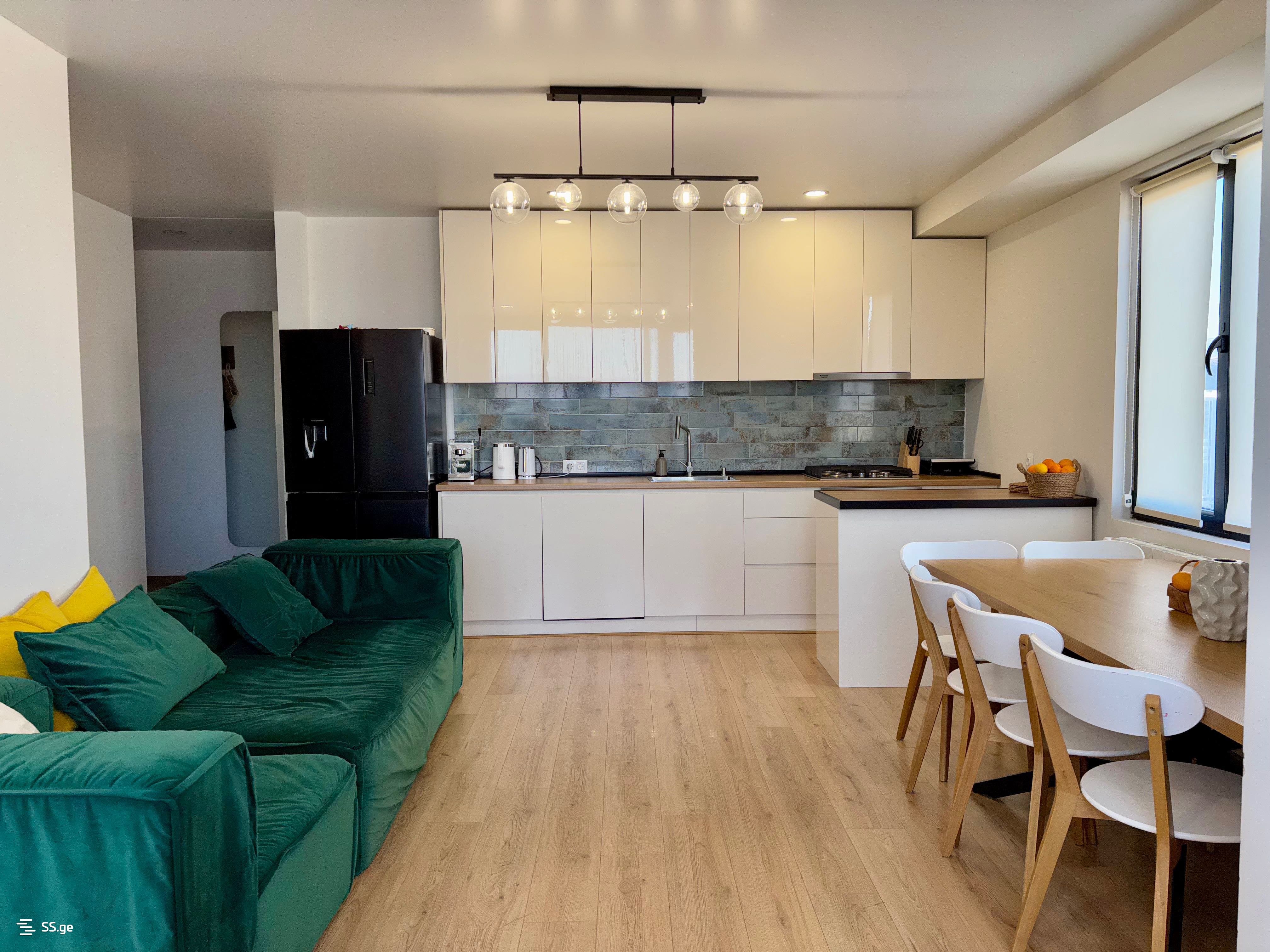 ბინაში არის შეცვლილი ყველაფერი; ახალი სანტექნიკა, ელექტროობა, კანალიზაცია, კარ-ფანჯრები და შემოსასვლელი კარი. კვადრატულობა უფრო მეტი არის, რადგან აივანი და სველი წერტილები არ არის შესული. ნათელი ბინა, რომელსაც აქვს ვიტრაჟული ხედები. ერთ საძინებელს აქვს საგარდერობე სივრცე და სველი წერთილი. მეორე საძინებლის გვერდით არის მეორე სველი წერტილი. ერთი დიდი მისაღები ოთახი სტუდიოს ტიპის. ფოტოში არსებული ყველა ნივთი და ტექნიკა რჩება სახლში, არის ფატქობრივად ყველაფერი ახალი; მაცივარი, გაზქურა, გამწოვი, ჭურჭლის სარეცხი მანქანა, სარეცხი მანქანა, ტელევიზორი, მაგიდები, სკამები, დივანი, საბავშვო ლოგინი, სამუშაო კუთხე, ყავის მადუღარა და ა.შ