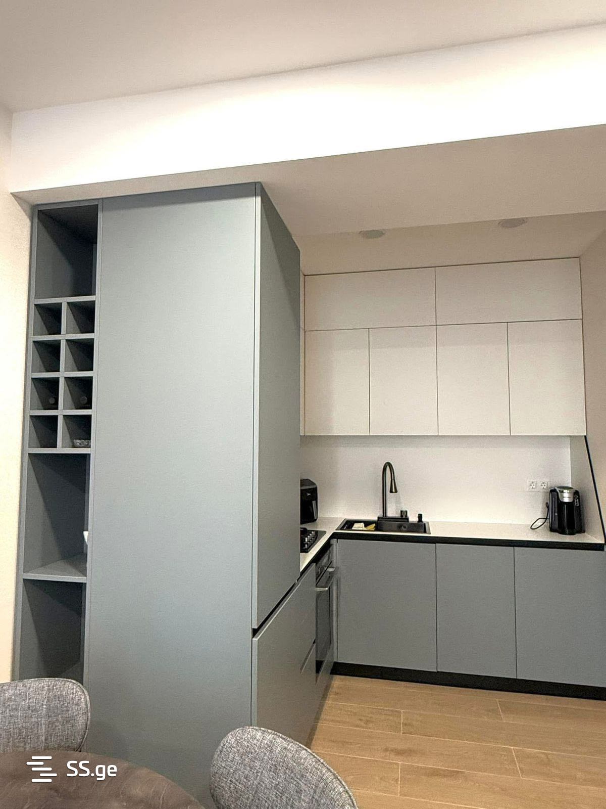 ბინა არის მზად რომ შეხვიდეთ და იცხოვროთ, აღჭურვილია ყველა საჭირო ტექნიკით, რა თქმა არის შეყვანილი ყველა კომუნიკაცია. ავეჯის მასალა არის მაღალი ხარისხის და ყველა კარადა არის ჩაშენებული. არის აბაზანაშიც ორივე მხარეს სათავსოები, საძინებელშიც. საწოლს აქვს რკინის მექანიზმი და არის შიგნით სათავსო.