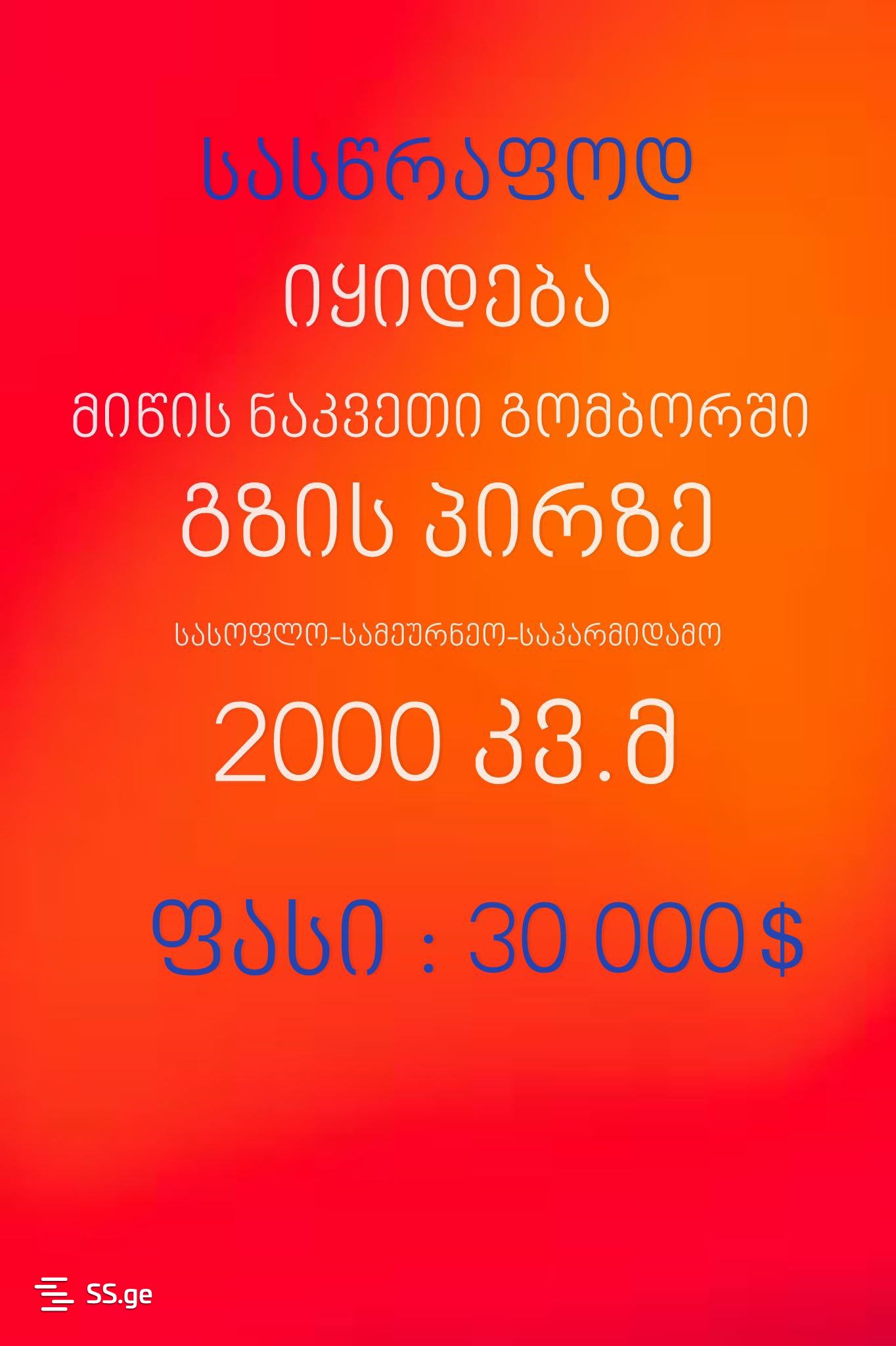 სასწრაფოდ❗️იყიდება გომბორში გზასთან ახლოს მიწის ნაკვეთი❗️თბილისიდან 60 კილომეტრში. 2000 კვ.მ სასოფლო-სამეურნეო-საკარმიდამო. საუკეთესო ლოკაცია! სიმწვანე, გასაოცარი კლიმატი! იდეალურია აგარაკისთვის ან კოტეჯისთვის! ვარ მეპატრონე ❗️სააგენტოებთან არ ვთანამშრომლობ