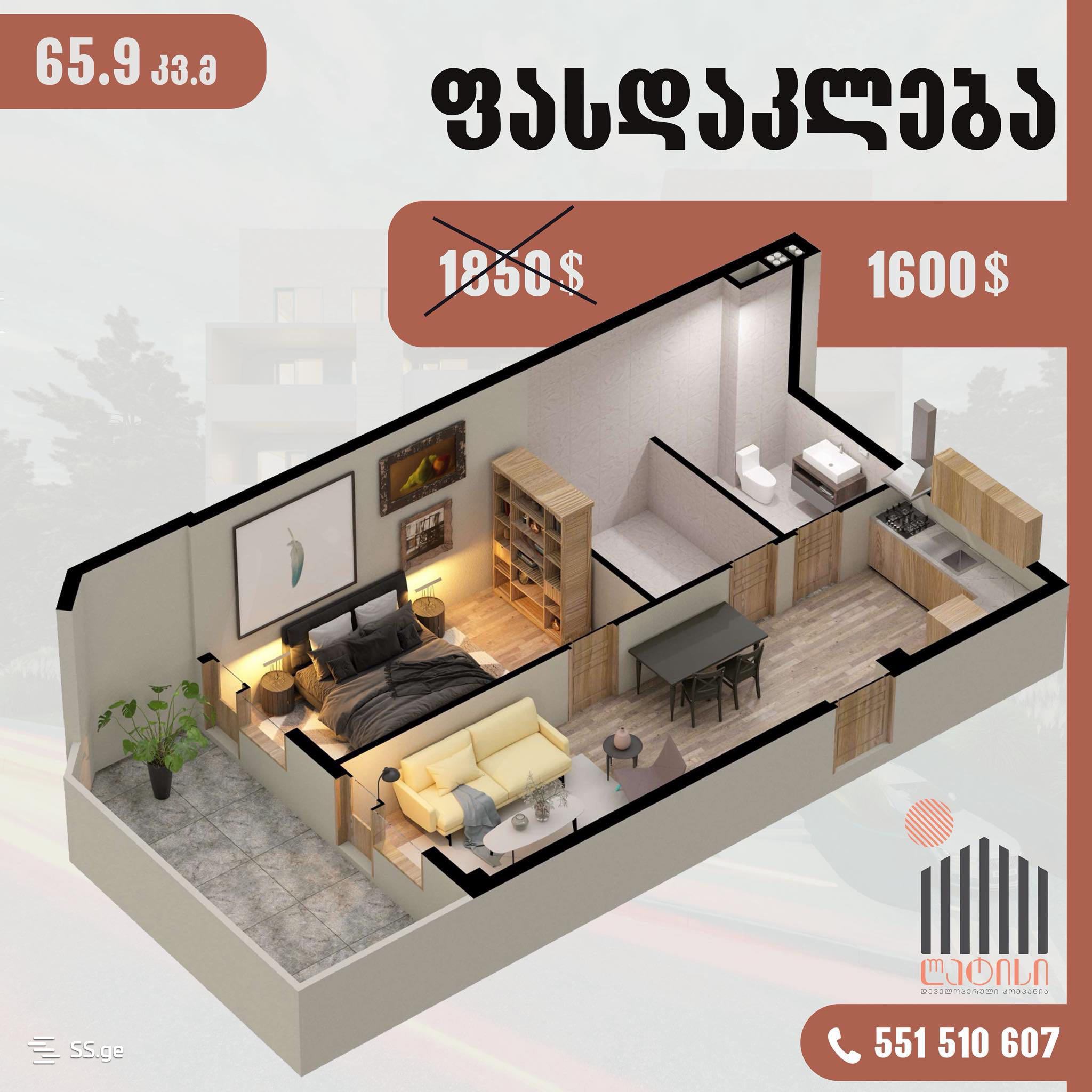 სასწრაფოდ იყიდება!! - 65.9 კვ.მ ბინა, ლატისის პემიუმ კლასის, დასრულებულ პროექტში! 1 მ2 - 1600$ (1850$ ნაცვლად) მხოლოდ ერთი ბინა დარჩა !! 💥 აქცია მოქმედებს 20 სექტემბრის ჩათვლით! კორპუსი უკვე დასრულებულია და ბინების 90% გაყიდულია! ყველა კომუნიკაცია შეყვანილია, ბარდება მწვანე კარკასი და სექტემბრის ბოლოს შედის ექსპლუატაციაში🤗 ▪️ საცხოვრებელი ფართი:52,2 კვ.მ ▪️ ტერასა: 14.4 კვ.მ 📞 📍 გ.შატბერაშვილის 68 — ჭავჭავაძის გამზირიდან 5 წუთის სავალზე.