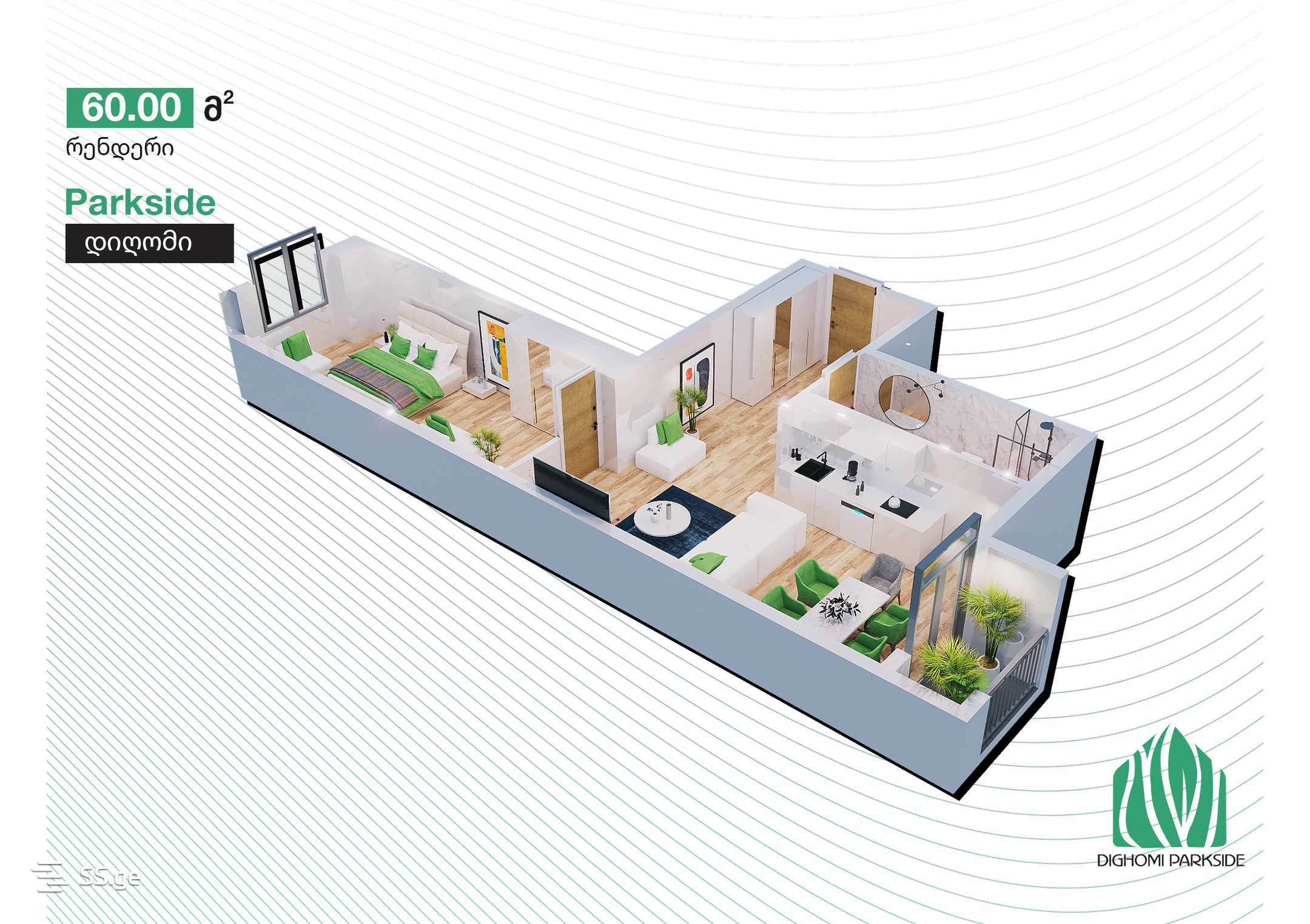 იყიდება 2 ოთახიანი ბინა დიდ დიღომში