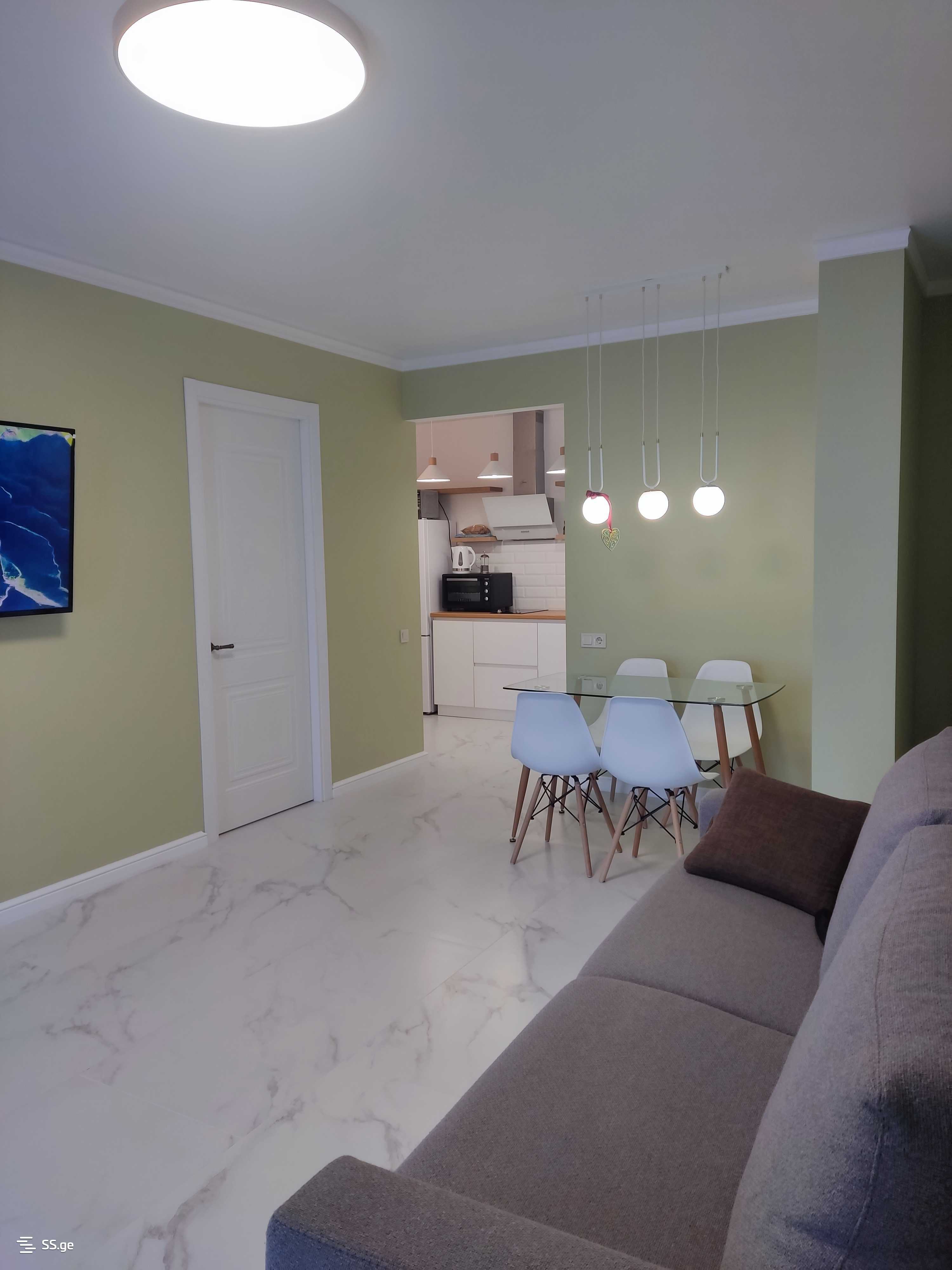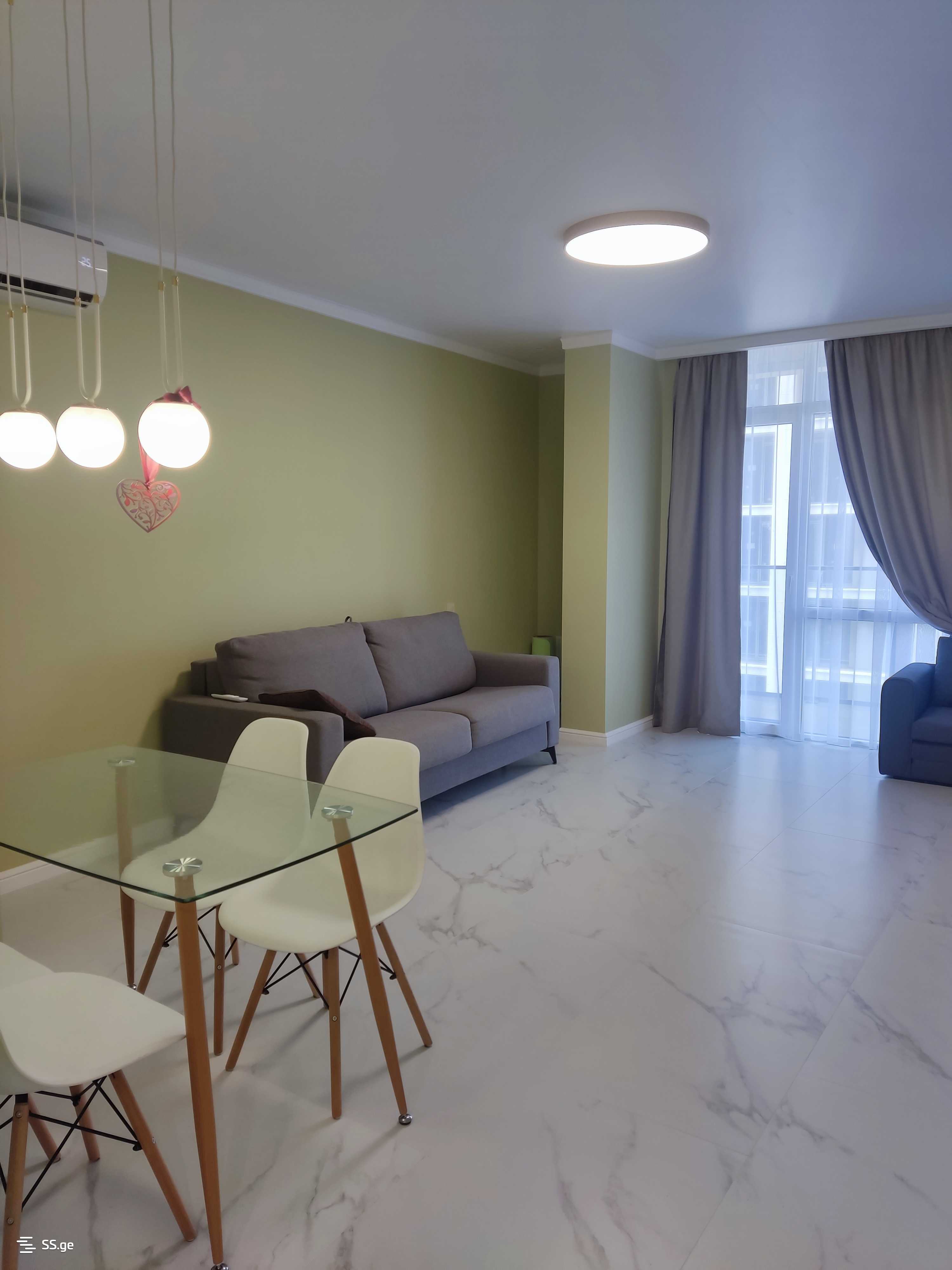 ბინა 1+1 ხარისხიანი ევრო რემონტით. ყველა კედელი იდეალურად არის გასწორებული. კარგად გაწვდილი განათება ზონებად. ხედი ზღვის მხარეს. 9-ე სართული.