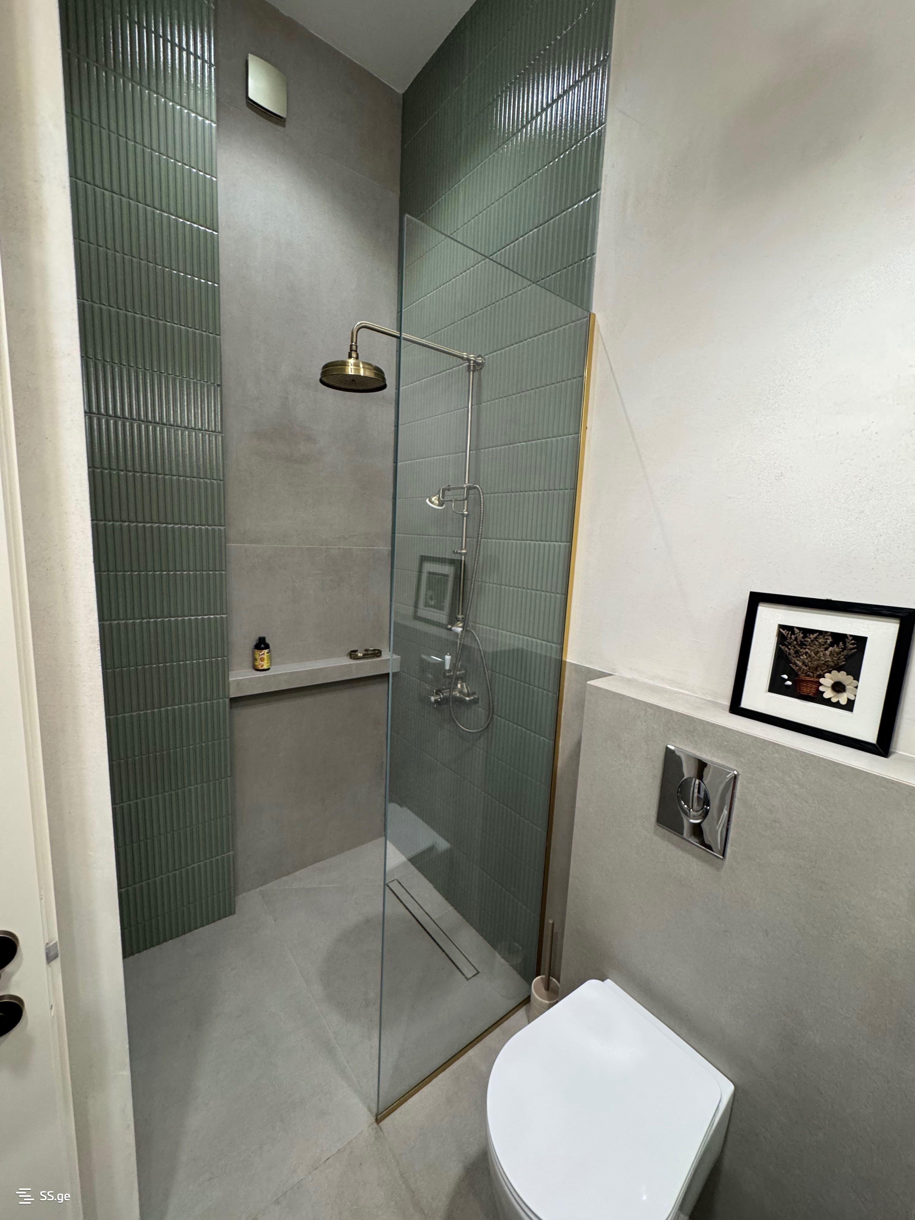 აივანზე არის ტექნიკური ოთახი/საქვაბე, სადაც ასევე დგას სარეცხი მანქანა.