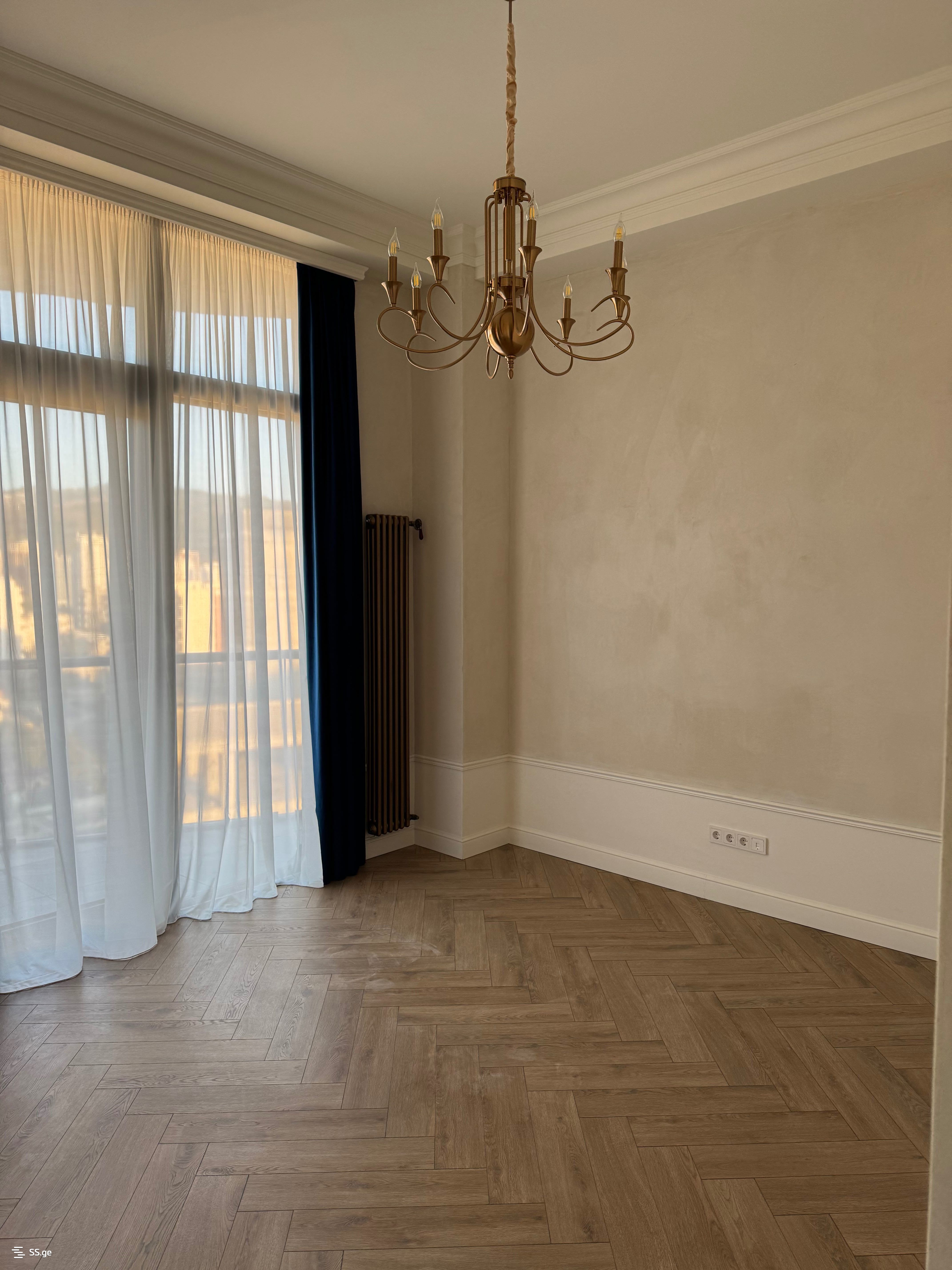 გარემონტებულია უმაღლესი ხარისხის მასალებით, ცალკე საგარდერობე ოთახით. სამზარეული აღჭურვილია უმაღლესი ხარისხის ტექნიკით.