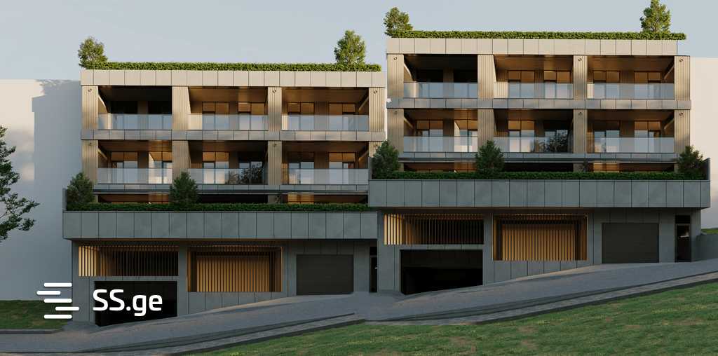 • თითო კორპუსზე 3 სართული საცხოვრებელი ბინები (ბინები და აივნები): ჯამში 1802 კვ.მ (ამ ფართს ემატება 430 კვადრატი ვერანდები 1-ლი სართულის ბინების)