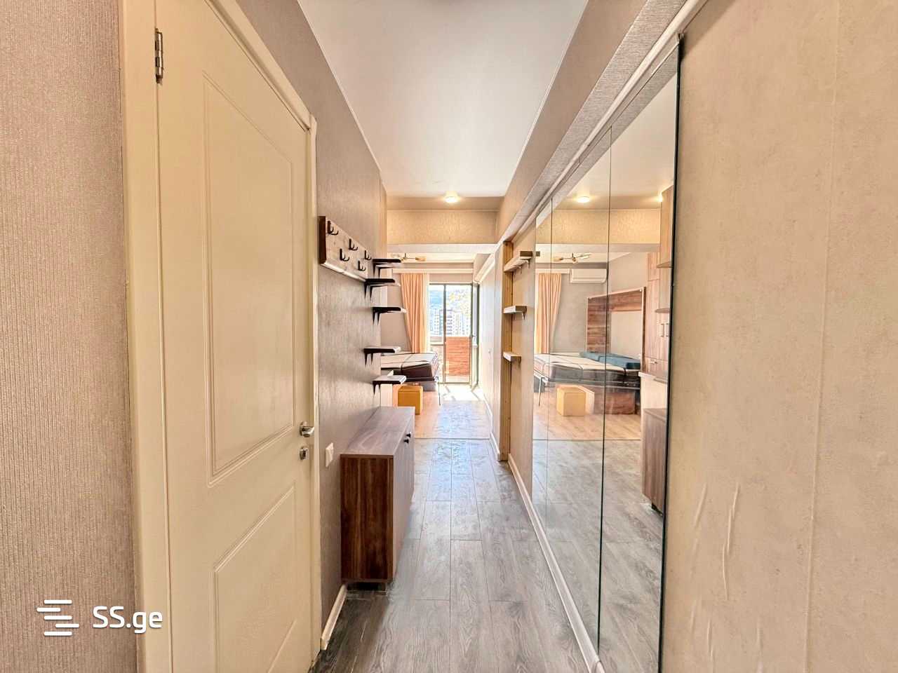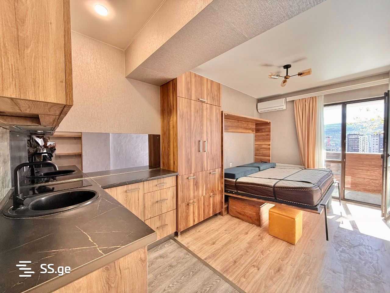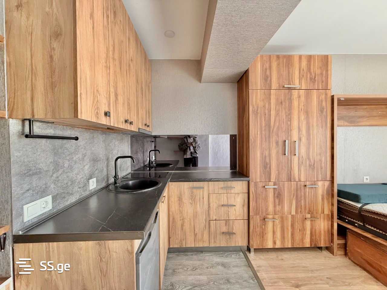 იყიდება ახალ კორპუსში, მინუს მე 3 სართული სადარბაზოდან(სახლი განლაგებულია ფერდობზე), 24.9 m2, სტუდიო-სამზარეულო აივნით, პანორამული ფანჯრებით, სველი წერტილი შხაპით, ახალი რემონტით, ყველა საჭირო ავეჯი ტექნიკით. #შაფიაგენტი.