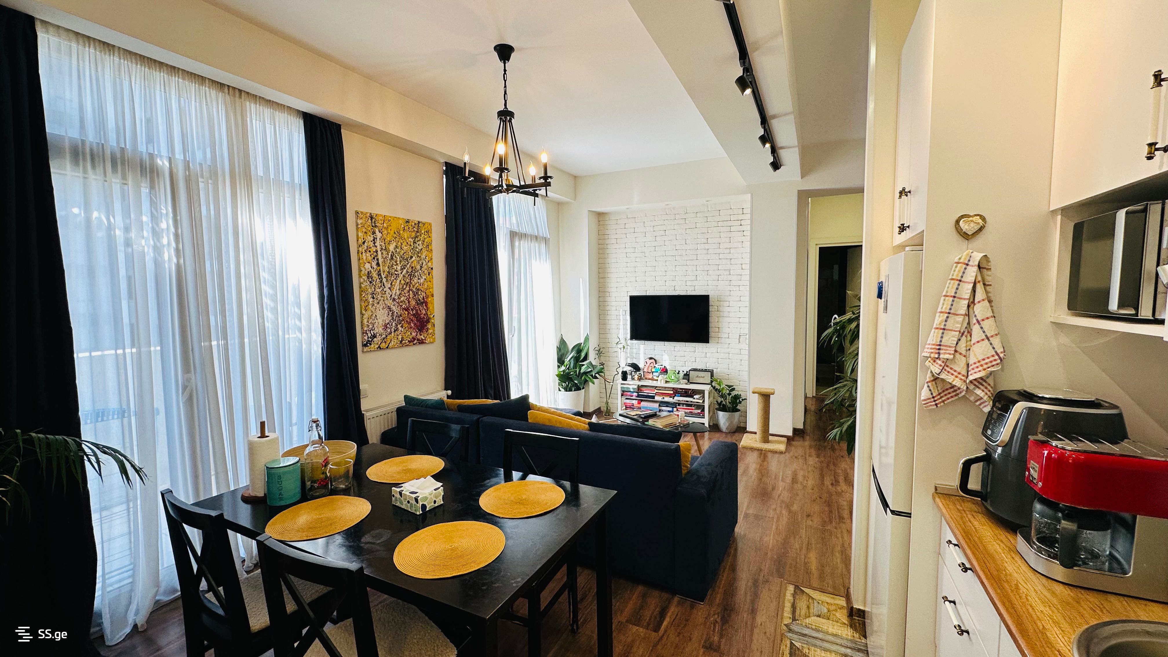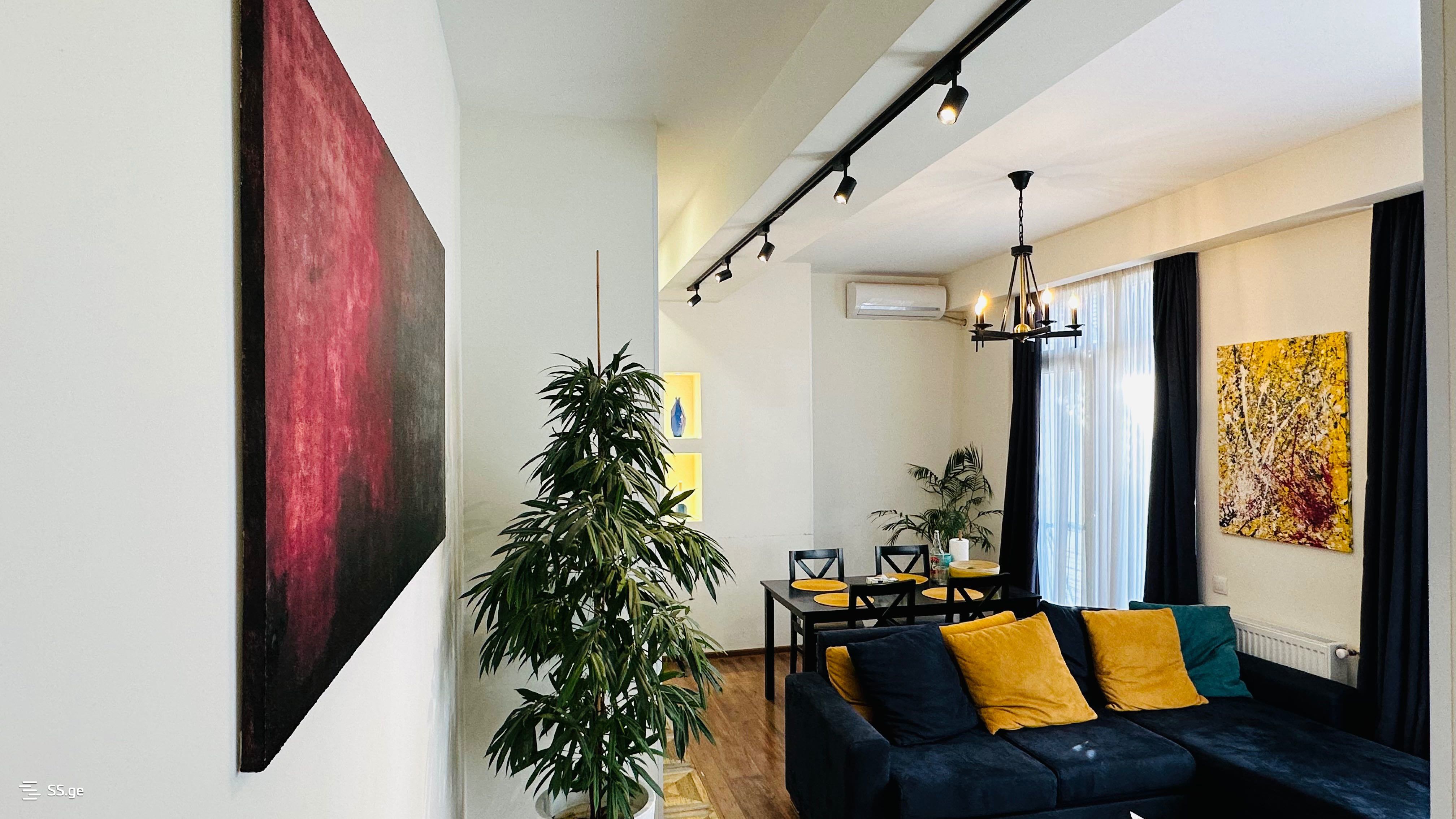 ოთახების გამორჩეულად უცხო განლაგების დამსახურებით ბინა ძალიან ნათელი და სივრცულია. ბინაში რჩება ავეჯი და ახალი ტექნიკა (კონდიციონერი, მაცივარი, სარეცხი მანქანა, ტელევიზორი). გამორჩეული პროექტის მყუდრო ბინა მდებარეობს პოლიტკოვსკაიას ქუჩაზე, "სეუ დეველოპმენტის" პრესტიჟულ კორპუსში, "ნიუტონის სკოლის" გვერდით. პირველ სართულზე არის კაფე "ნოველა". აქვს დიდი აივანი, დღის 01:00 საათიდან საღამომდე მზიანია. ვარ ბინის მეპატრონე