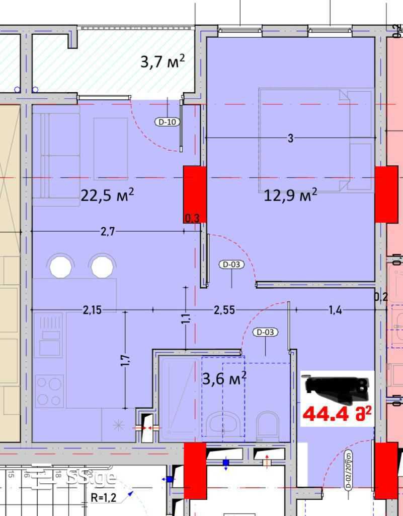 იყიდება 2 ოთახიანი ბინა, სტუდიოს ტიპის მისაღებით, 1 ნათელი საძინებლით,