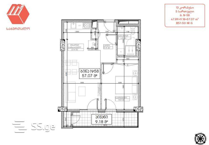 57.07 მ²ოთახი