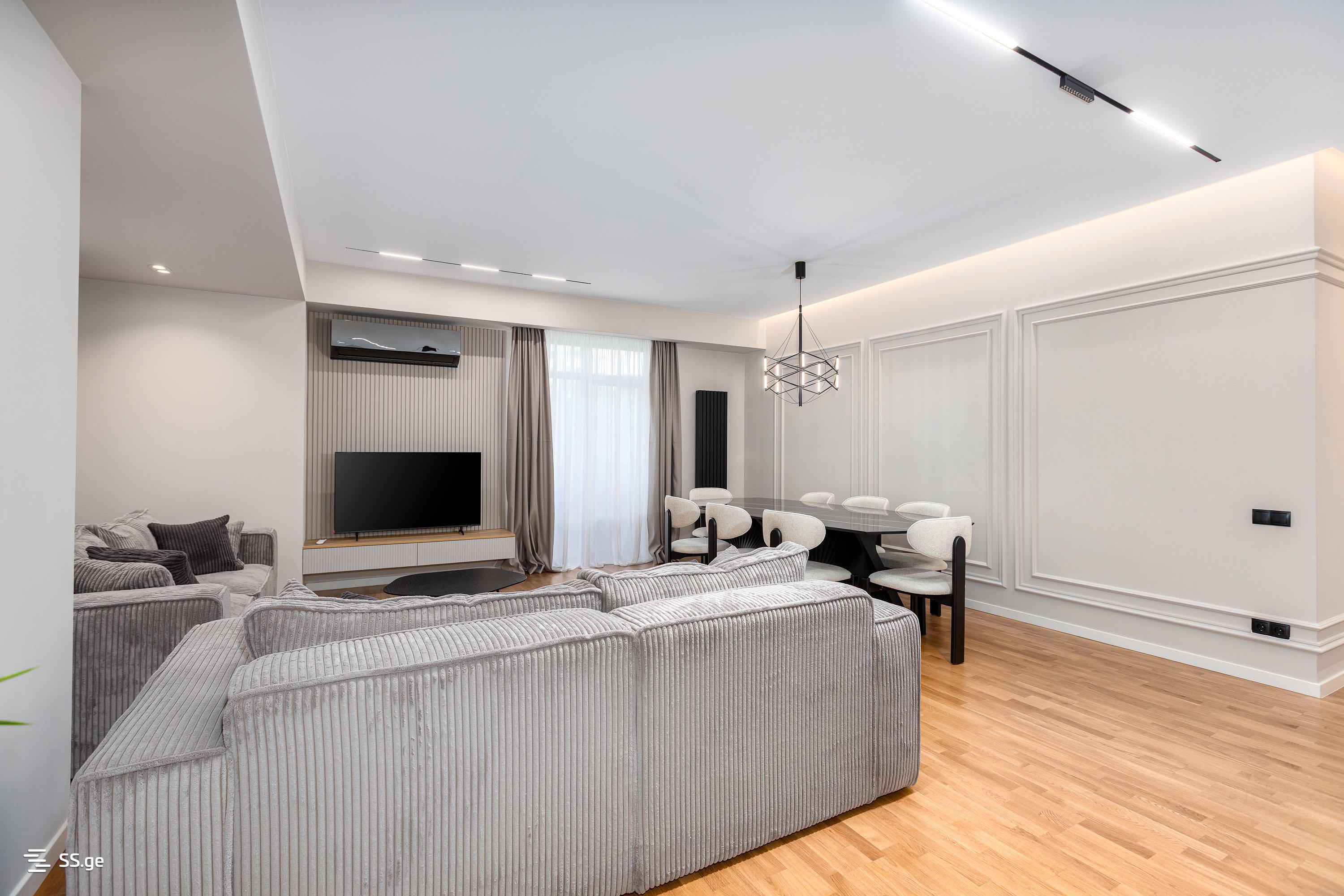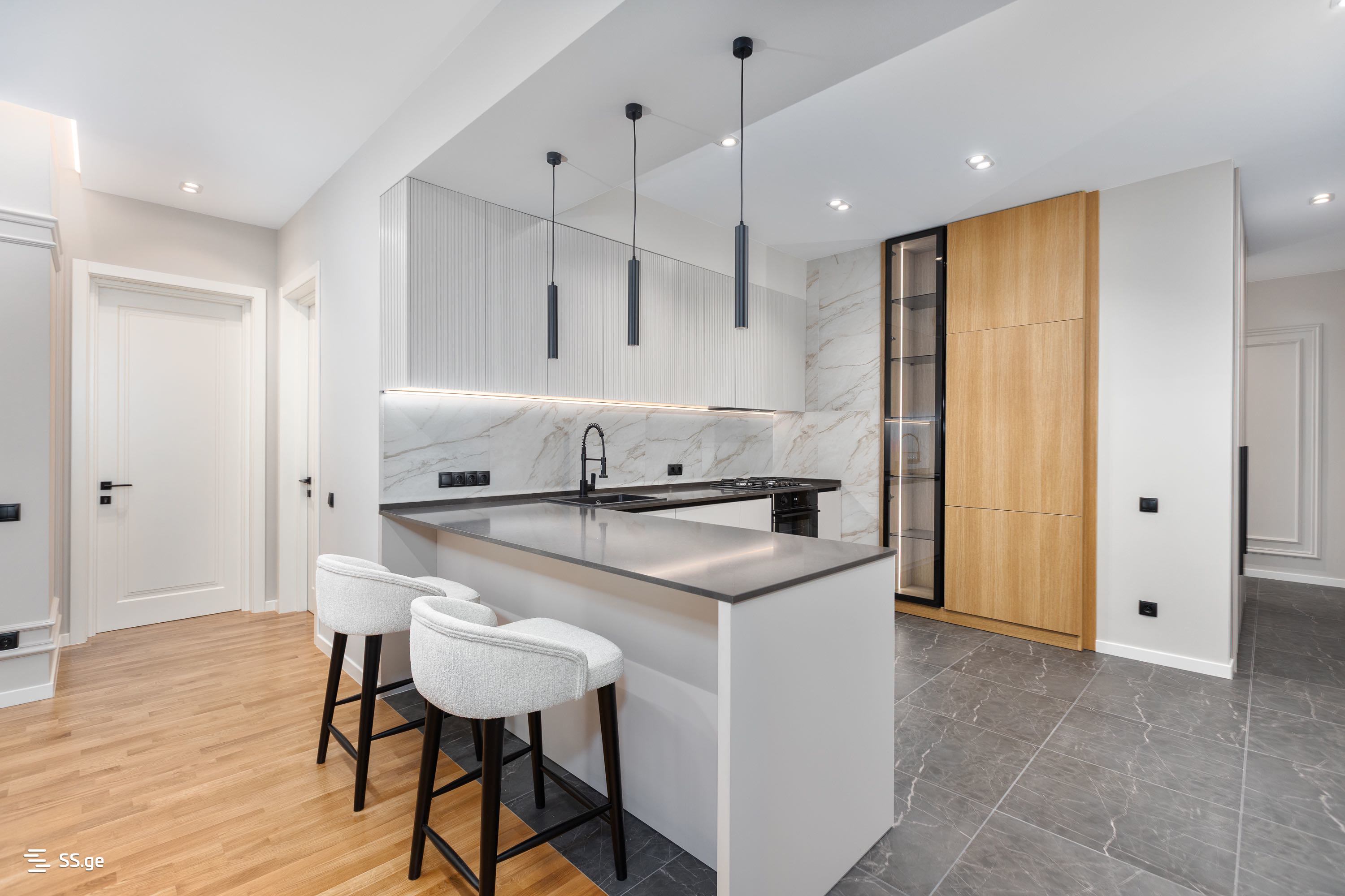 ბინის ინტერიერზე იმუშავეს საუკეთესო დიზაინერებმა.