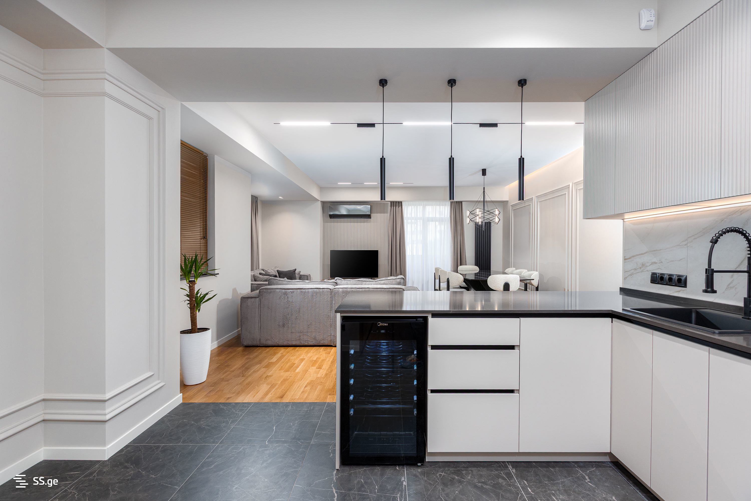 ბინა არის გამჭოლი, აღჭურვილია ექსკლუზიური, ევროპული უმაღლესი ხარისხის ტექნიკით და ავეჯით.