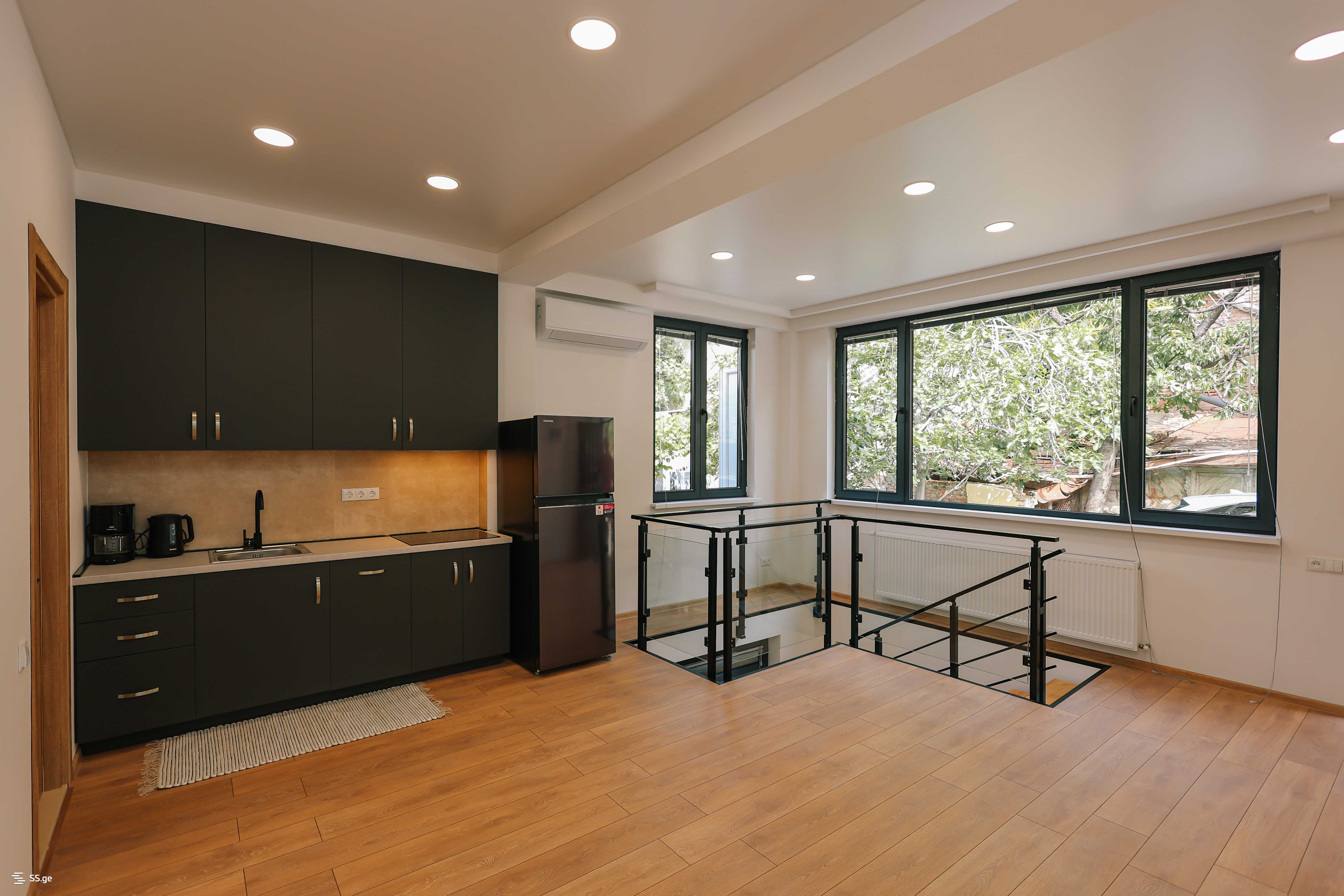 აღმაშენებლის გამზირზე, თბილისურ ეზოში ქირავდება ახალაშენებული და ძალიან კარგად გარემონტებული შენობა. შენობა მდებარეობს თბილისის გულში, საუკეთესო ადგილას, საიდანაც თბილისის ყველა უბანში გადაადგილება არის ადვილი. საერთო ფართი 68 კვ.მ ფართო და ნათელი ნახევარსადაფული სართული 27 კვ.მ პირველი სართული კი 41 კვ.მ. პირველ სართულზე მოწყობილია სამზარეულო კუთხე და სველი წერტილი. სახლი დგას წყნარ, ქუჩის ხმაურისგან დაცული ეზოში, რომელიც იკეტება და არის სრულიად დაცული და უსაფრთხო. ეზოში არის პარკირების ერთი ადგილი. მოცემული ფასი არ მოიცავს სახელმწიფო გადასახადებს. ვარ მესაკუთრე.