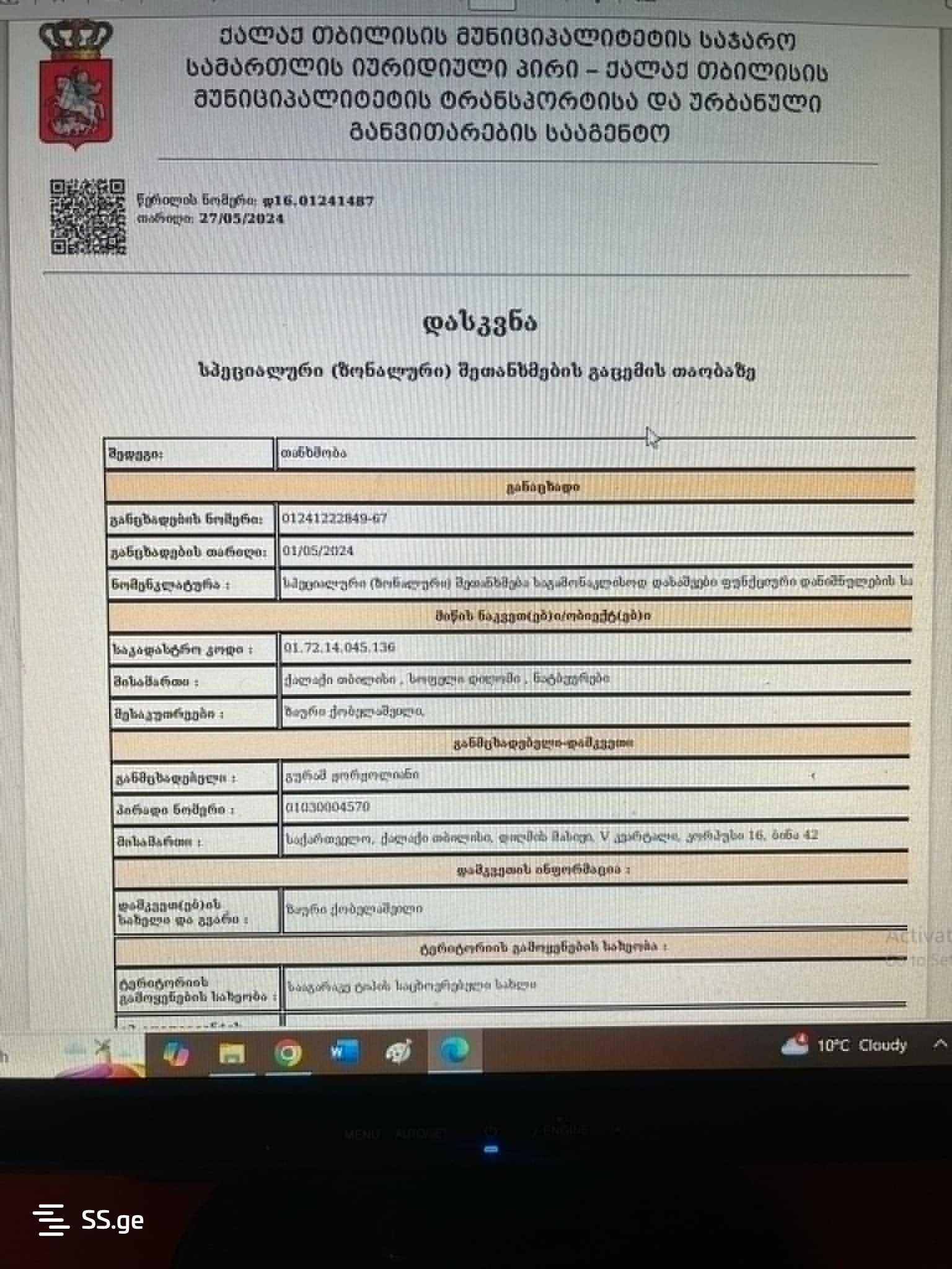 მშენებლობის ნებართვით (სააგარაკე-დასასვენებელი საცხოვრებელი სახლის განთავსების მიზნით, სპეციალური (ზონალური) შეთანხმების გაცემის თაობაზე ნებართვით, იყიდება სამოსახლო მიწის ნაკვეთი ქოშიგორაზე, შუქი და წყალი მიყვანილია ნაკვეთთან. მისასვლელი კარფურის მოპირდაპირედ, ასახვევია. ფასი: 1კვმ 120 აშშ დოლარი. ს.კ. 01.72.14.045.136 ნატბეურის ქუჩაზე