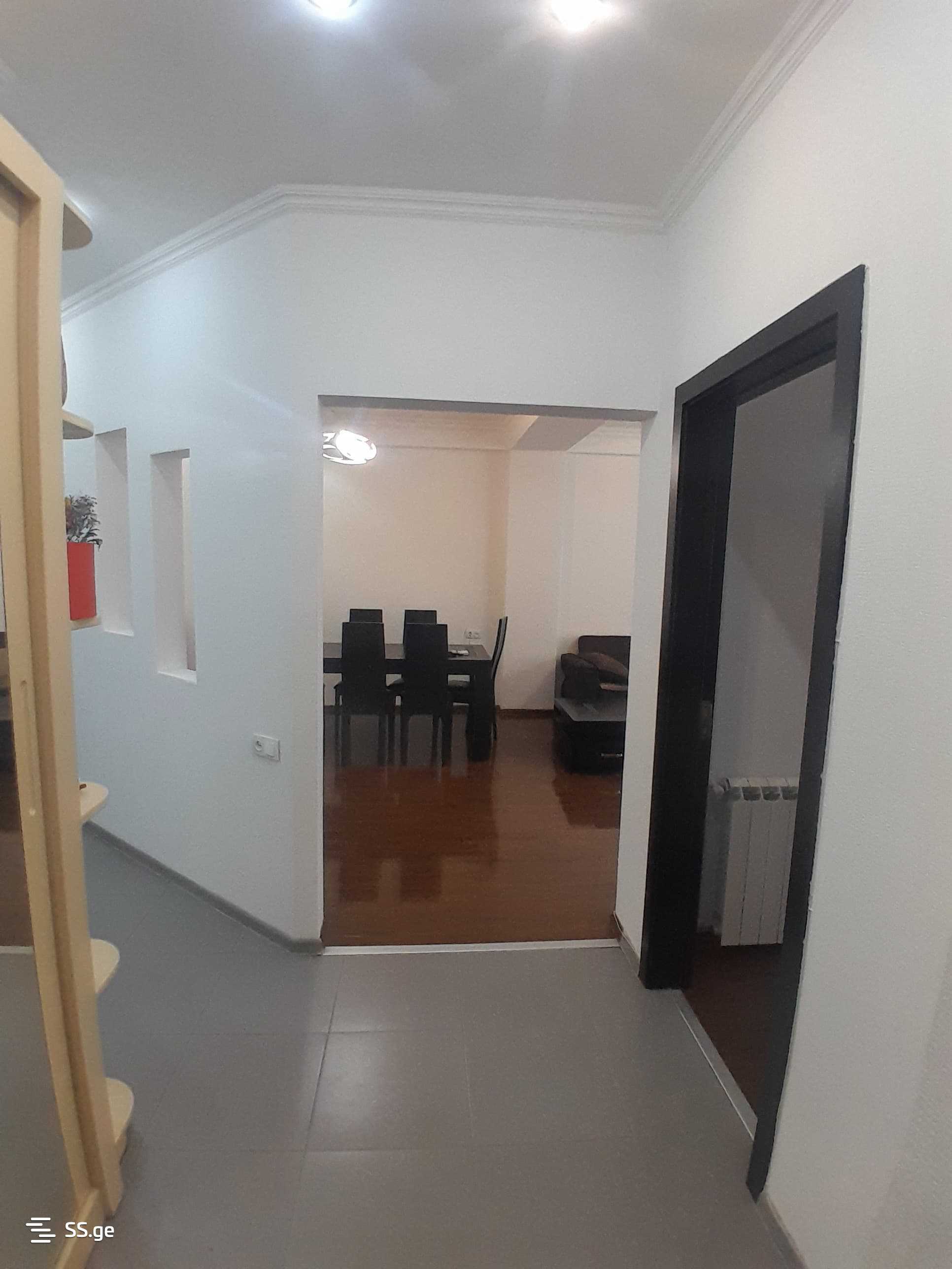 ქირავდება ახალი აშენებული, ნათელი და მყუდრო ბინა 90 კვ.მ ფართობით, რომელიც მდებარეობს 10-სართულიანი კორპუსის მეცხრე სართულზე. ბინაში განთავსებულია 2 კომფორტული საძინებელი, მისაღები ოთახი და სასადილო სივრცე, რომელიც იდეალურია ოჯახური საღამოებისთვის. ბინას აქვს დიდი აივანი, ასევე 2 კონდიციონერი და ცენტრალური გათბობა
