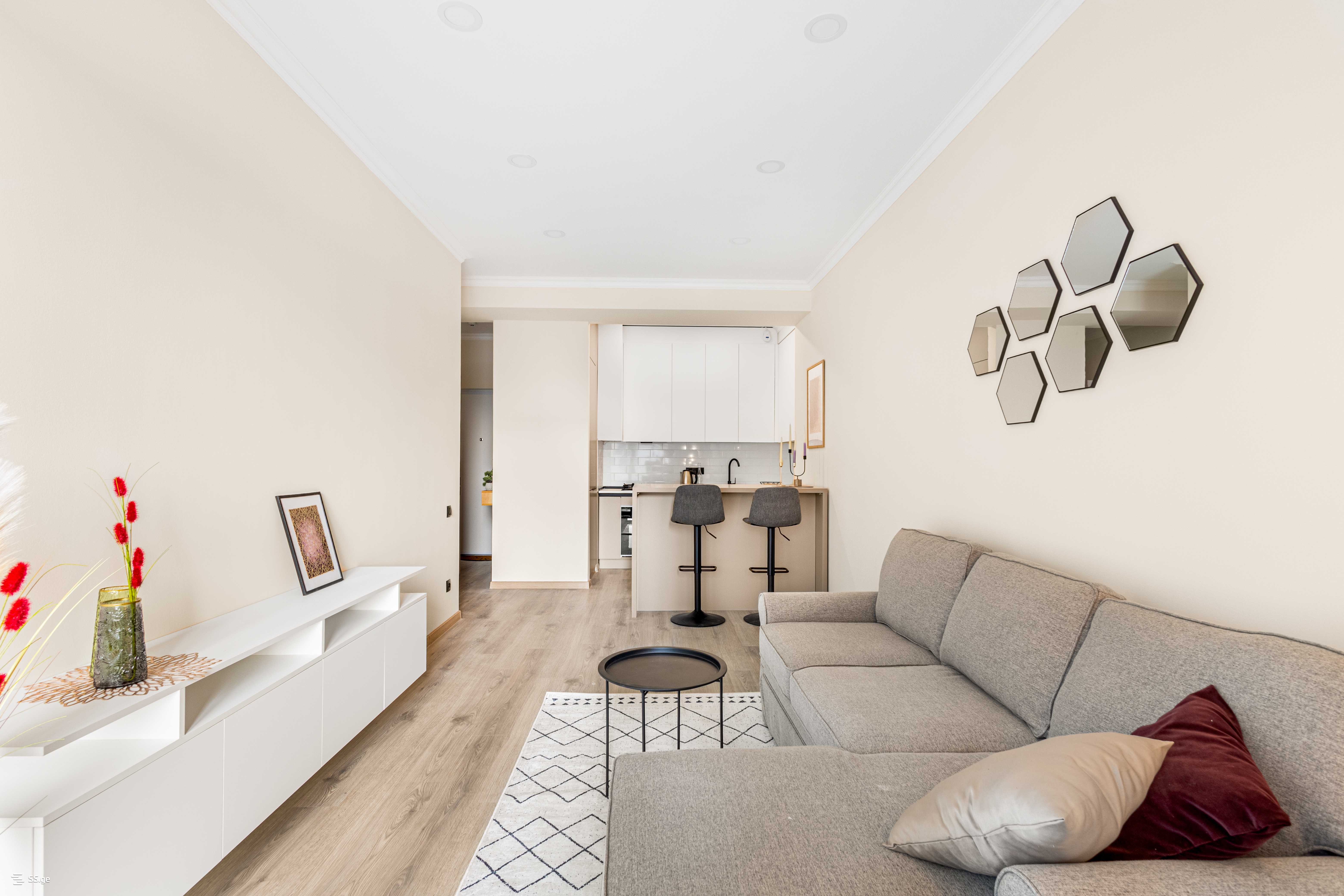 ქირავდება ძალიან მყუდრო და ნათელი 65 მ² ბინა საბურთალოზე, ჟიული შარტავას ქუჩაზე, „თეთრი კვადრატის“ ახალ, პრესტიჟულ კომპლექსში. ბინა არის ახალი გარემონტებული მაღალი ხარისხის მასალებით და აღჭურვილია ყველა საჭირო ტექნიკით — უბრალოდ შედით და იცხოვრეთ! 🏡✨