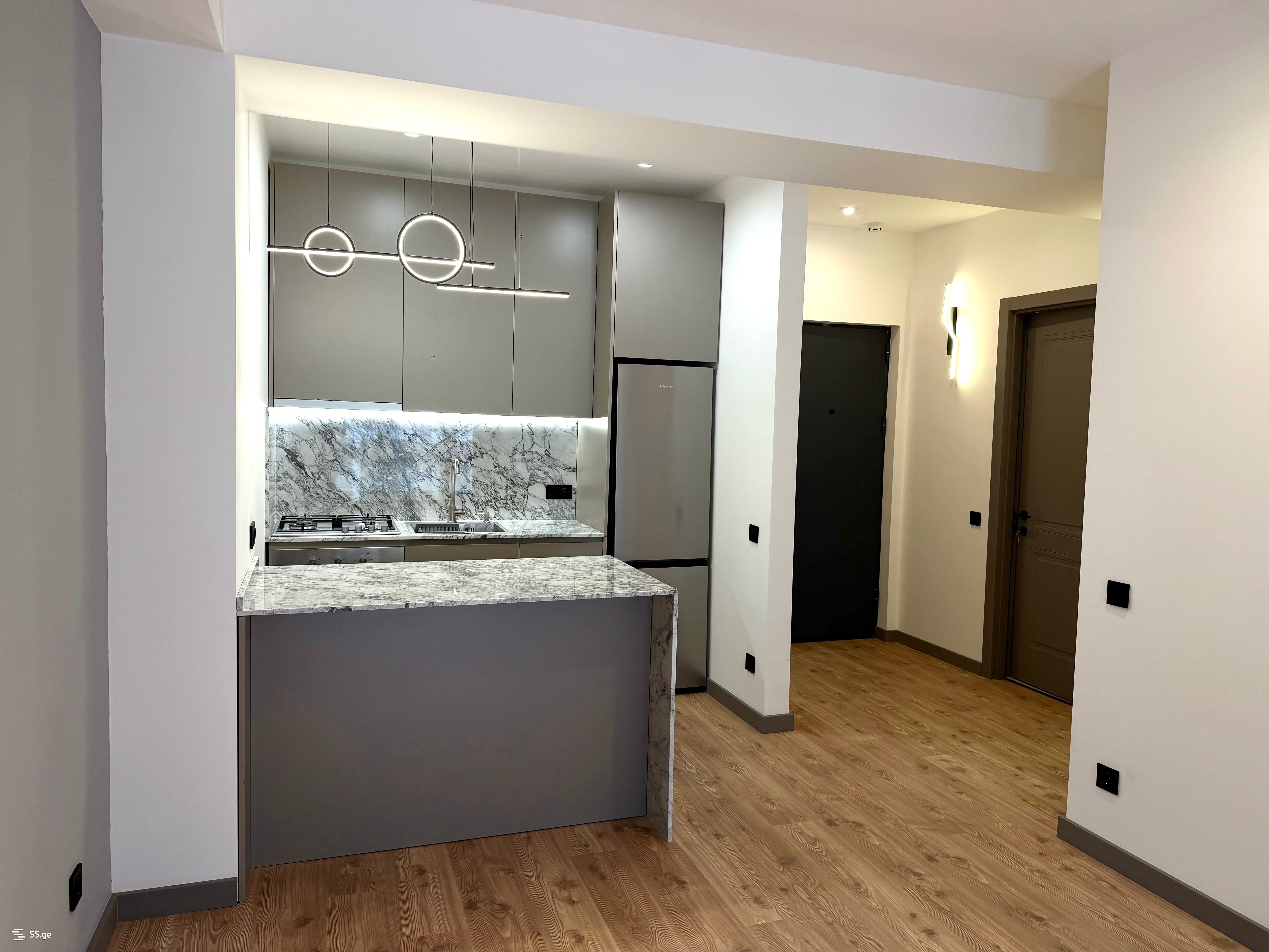 ბინა შესრულებულია მაღალი ხარისხის მასალებით. ინტერიერში გამოყენებულია მარმარილო, სამზარეულო და სველი წერტილი სრულად აღჭურვილია თანამედროვე ტექნიკითა და ავეჯით.