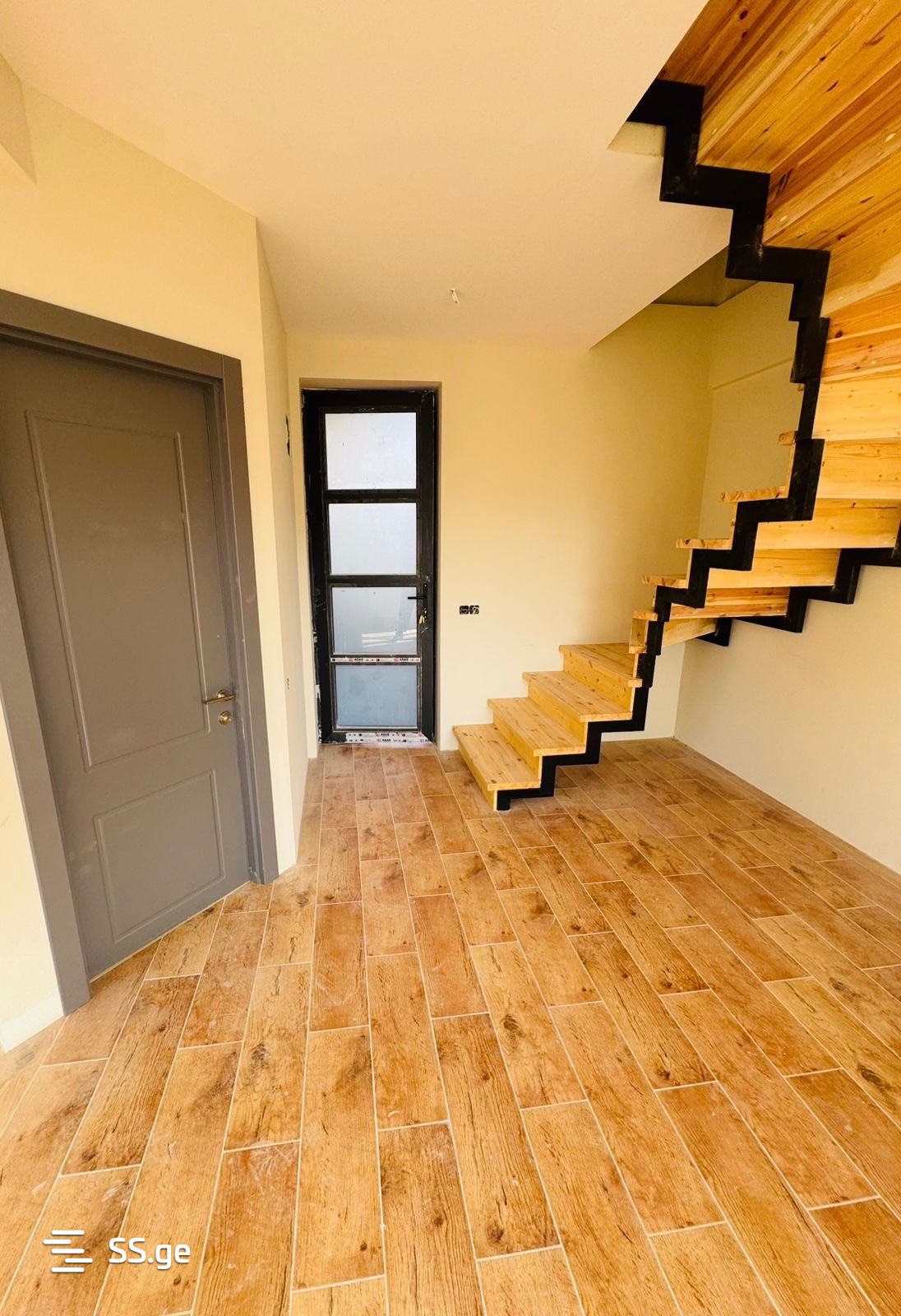 - პირველ სართულზე განთავსებულია სტუდიოს ტიპის მისაღები და სველი წერტილი;