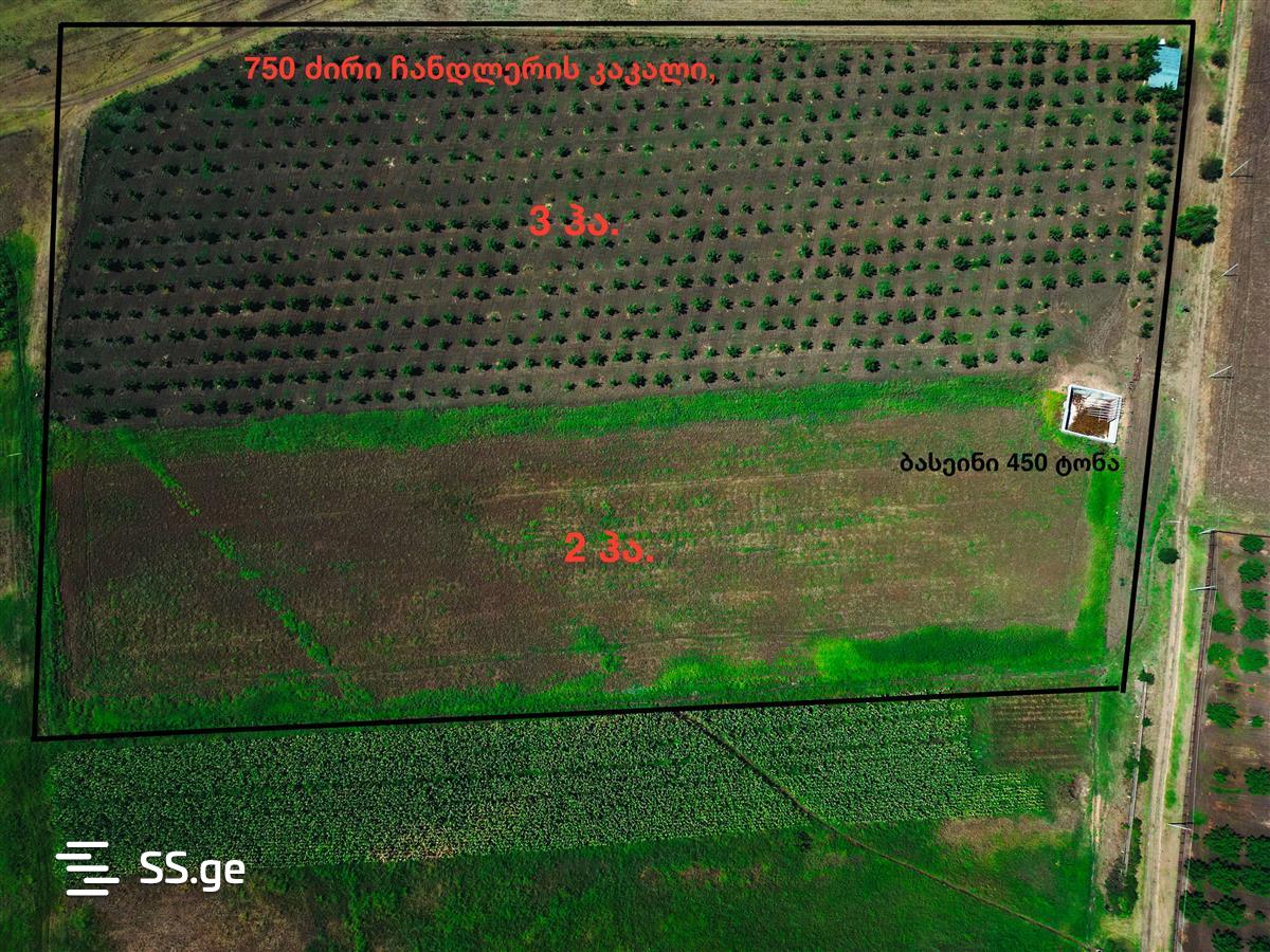 ნაკვეთი არის შემოკავებული, 3 ჰექტარზე დარგულია 5 წლიანი ჩანდლერის ჯიშის კაკლის ხეები. 2 ჰექტარი არის თავისუფალი და განთავსებულია 450 ტონიანი ბასეინი.