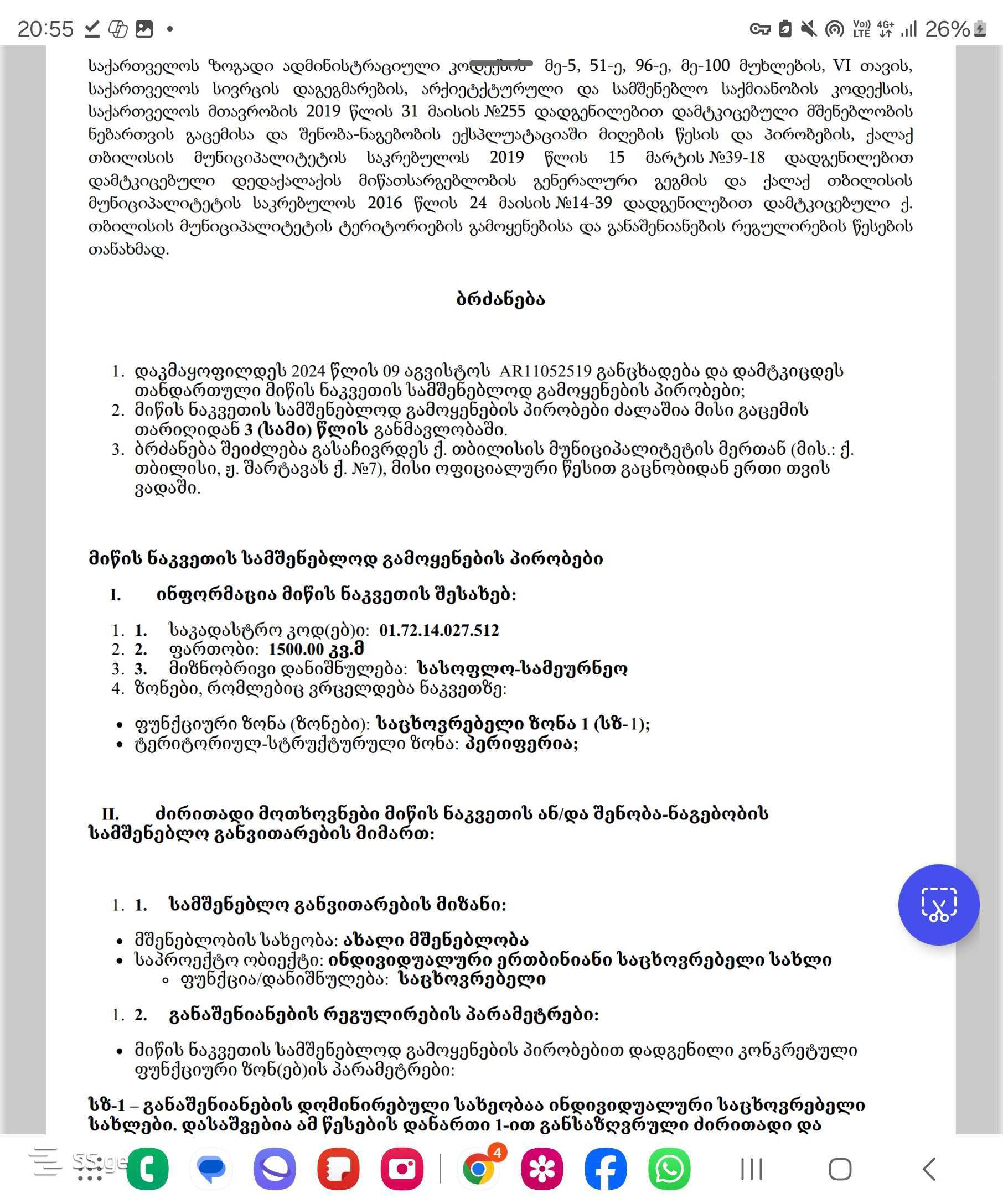 იყიდება სასწრაფოდ. 511 კვ.მ. ირგვლივ განაშენიანებული ტერიტორია, აღებულია გაპ-ი