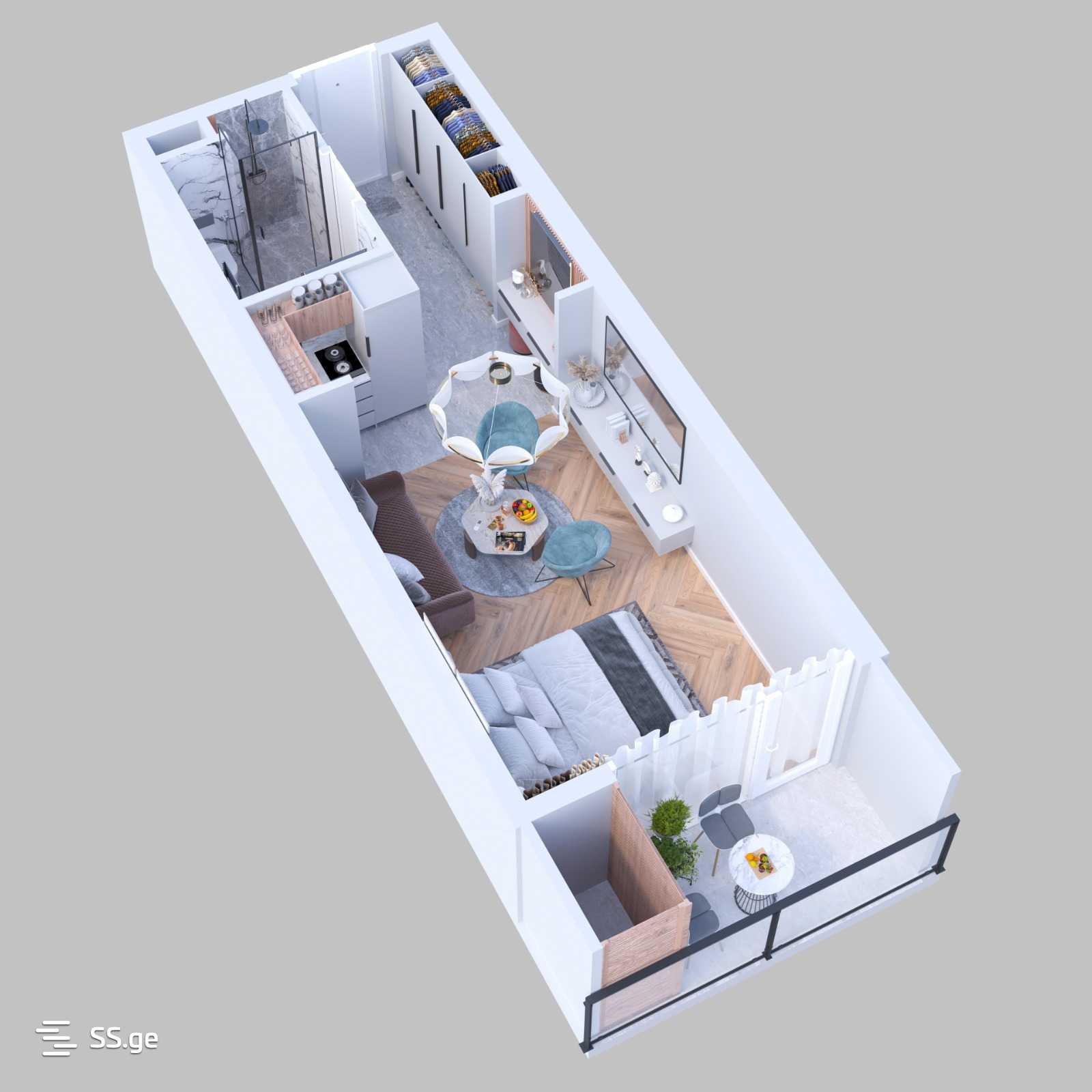 34.4 მ²ოთახი