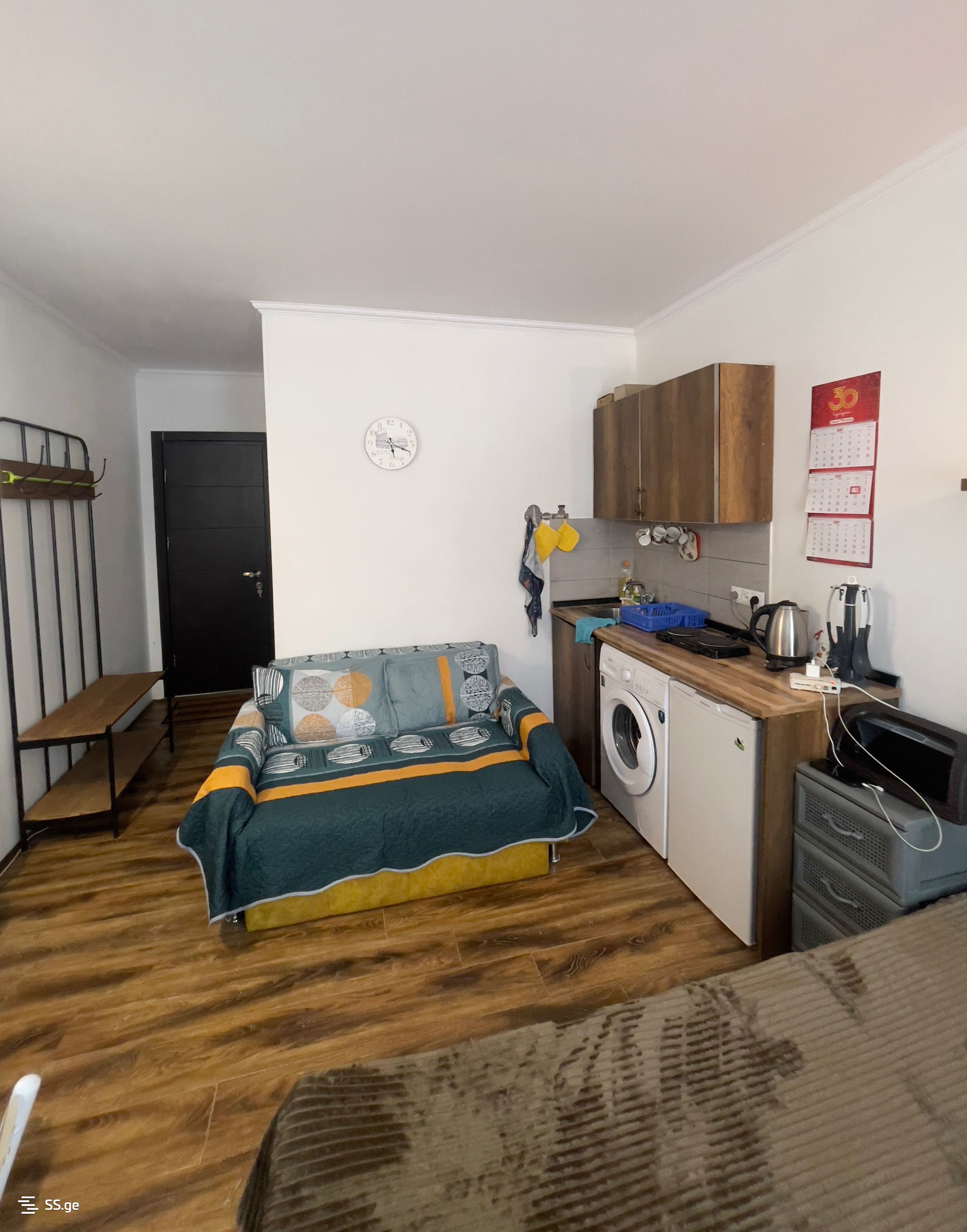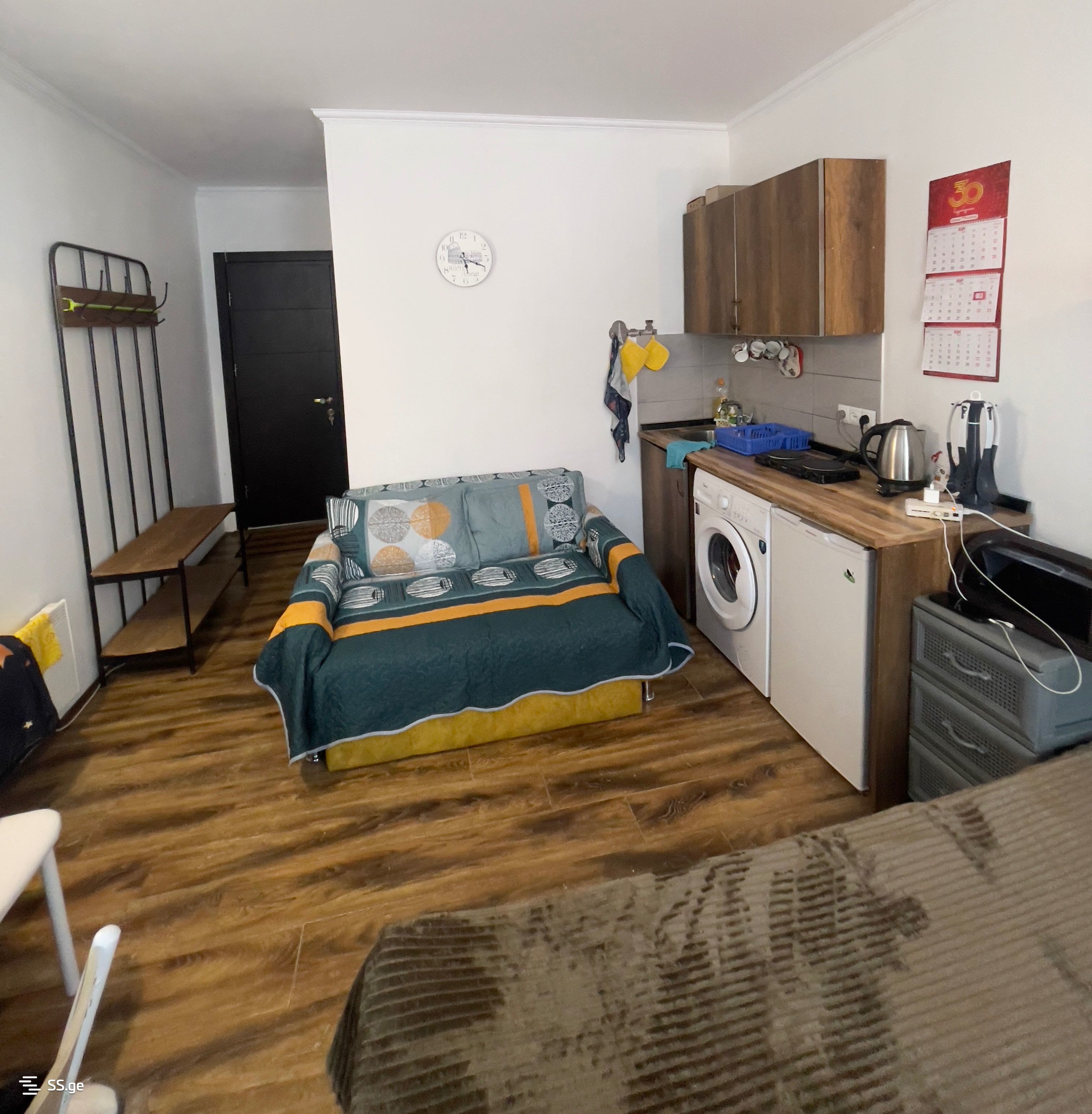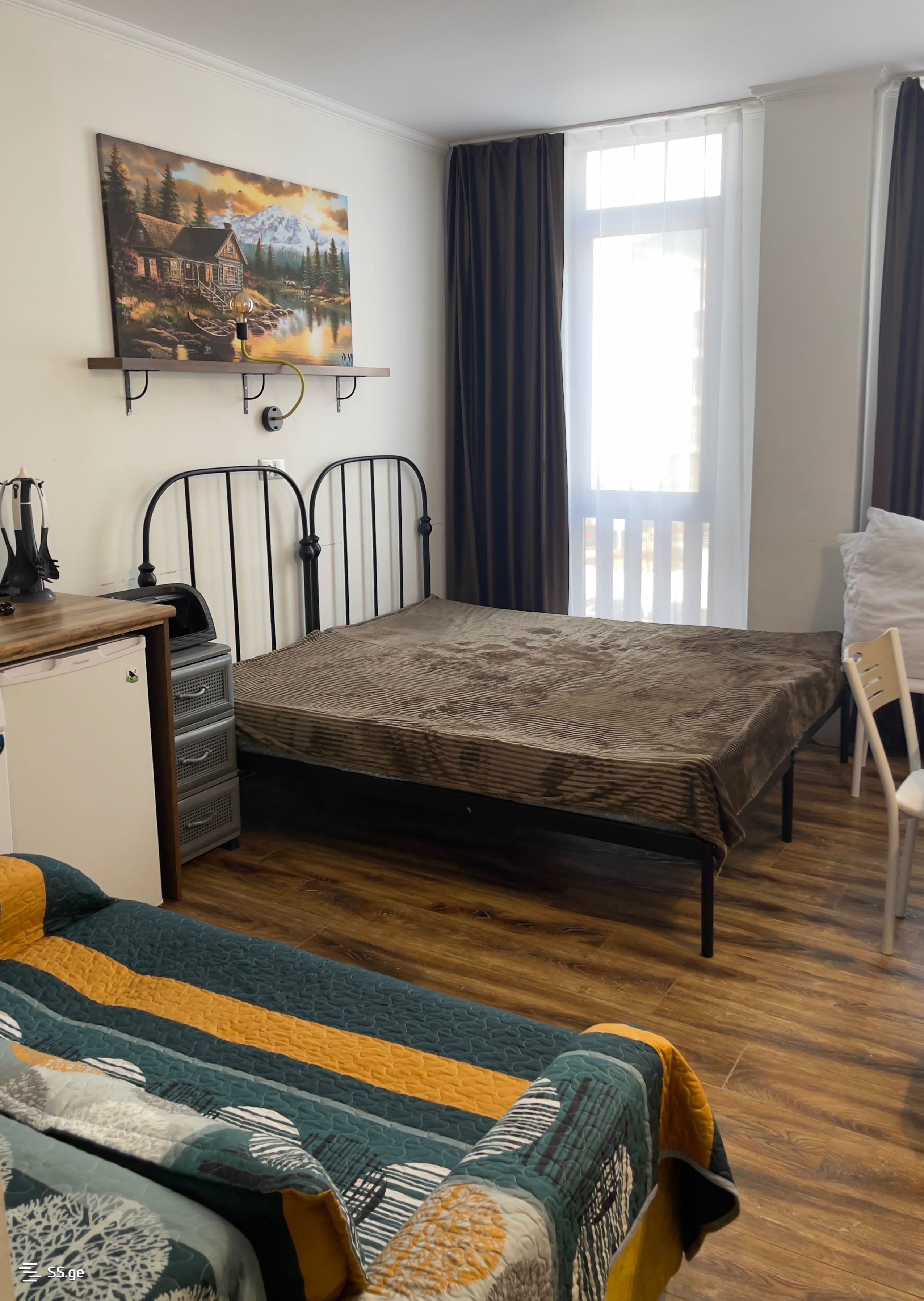 მოგესალმებით. იყიდება ბაკურიანში, ტერასა 8-ში , 1 ოთახიანი студიო, აივნის გარეშე; 25 იანებთან ახლოს (300 მეტრში) და კოხტას ტყესთან და საბაგიროსთან. ლოკაცია: წაქაძის ქუჩა..კოხტას ძირი. სართული მე-3 (ლიფტი არ არის.) ბინაში დაგხვდებათ: სამზარეულო(ჭურჭლით) ელექტრო ქურა ელექტრო ჩაიდანი ფენი მაცივარი სველი წერტილი ცხელი წყალი კომფორტული საწოლი( 2 ადგილიანი) კომფორტული დივანი, დივანი იშლება და გათვლილია 2 პერსონაზე. გათბობა ტელევიზორი ინტერნეტი და ტელევიზია კეთილმოწყობილი ,დახურულკ ეზოთი სადაც მხოლოდ ჩვენი დამსვენებლები შედიან ჩიპის საშვალებით. ასევე სასტუმროსთან ახლოს ბავშვთა სასრიალო და საბაგირო. სასტუმროს პირველ სართულზე არის სუპერ მარკეტები: ორი ნაბიჯი და სპარი. მოპირდაპირედ ნიკორა.