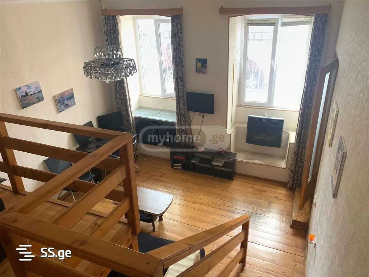 ბინას აქვს ხის ინტერიერი და ხის ანტრესოლი 1 საძინებელი ანტრესოლის ზევით და ერთი შესაძლებელია გაკეთდეს ქვემოთ, ცალკე აქვს სამზარეულო და სველი წერტილი. შესასვლელი აქვს ქუჩიდან რკინის კარით. მარჯანიშვილის მეტროდან 5/10 წუთის სავალზეა. რჩება ავეჯი და ტექნიკა.
