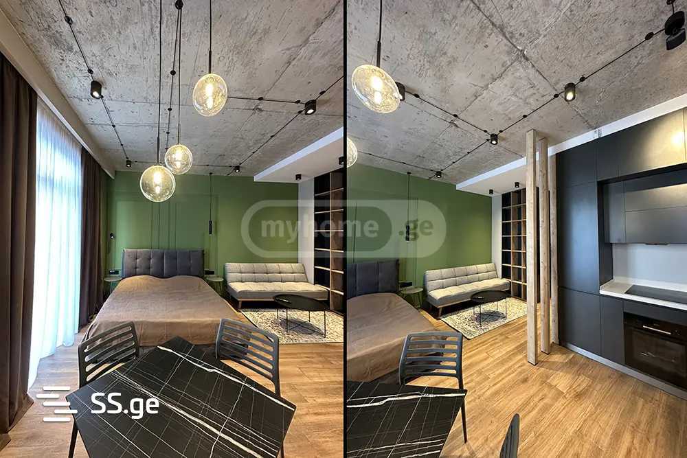 იყიდება სტუდიოს ტიპის ბინა . 33 კვ.მ + 2,5 კვ.მ აივანი . ბინა არის ახალი გარემონტებული . არ არის ნაცხოვრები . ფოტოები რიალურია. ყველა სახის ავეჯით და აპარატურით. ბინა მდებარეობს დიღმის მასივში , რობაქიძის გამზირზე , მაიაკოვსკის ძეგლის ( ახალი გარემონტებული სკვერის ) მიმდებარედ.