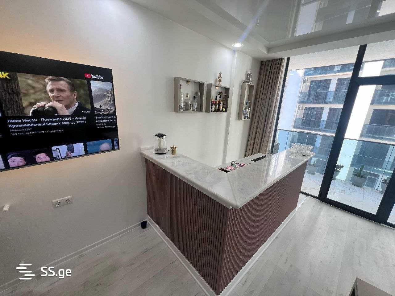 დიდი კომფორტული სტუდია ჯაკუზით მზა სახლში. ტერიტორიის ინფრასტრუქტურა: მეტრო სიტის სავაჭრო ცენტრი და სასტუმრო ეიფორია ახლოს მდებარეობს; მაღაზიები, კაფეები და რესტორნები ფეხით სავალ მანძილზეა; მოსახერხებელი სატრანსპორტო ბმულები ქალაქის ნებისმიერ ნაწილში შესასვლელად. კორპუსს აქვს 2 ჩქაროსნული ლიფტი დამოუკიდებელი ელექტრომომარაგებით, ფართო დარბაზი თანამედროვე ინტერიერით, მიწისქვეშა პარკინგი, ფიტნეს კლუბი, სათამაშო ადგილები ბავშვებისთვის, ოთახი საქმიანი მოლაპარაკებებისთვის, რამდენიმე კაფე და რესტორანი.