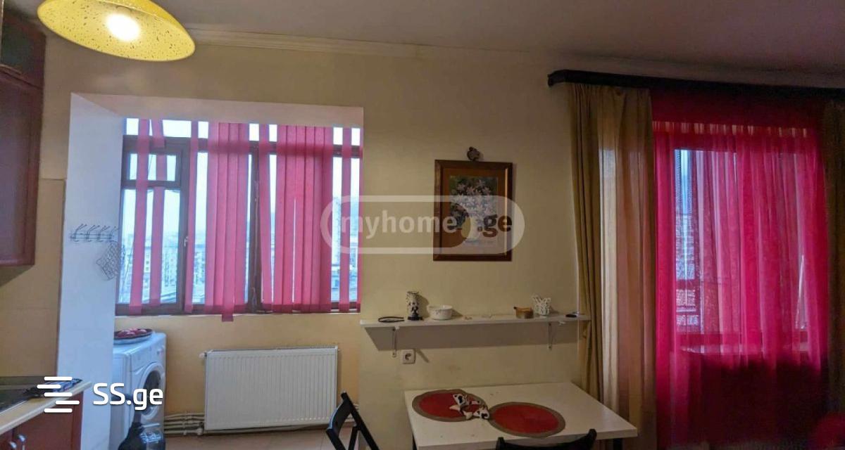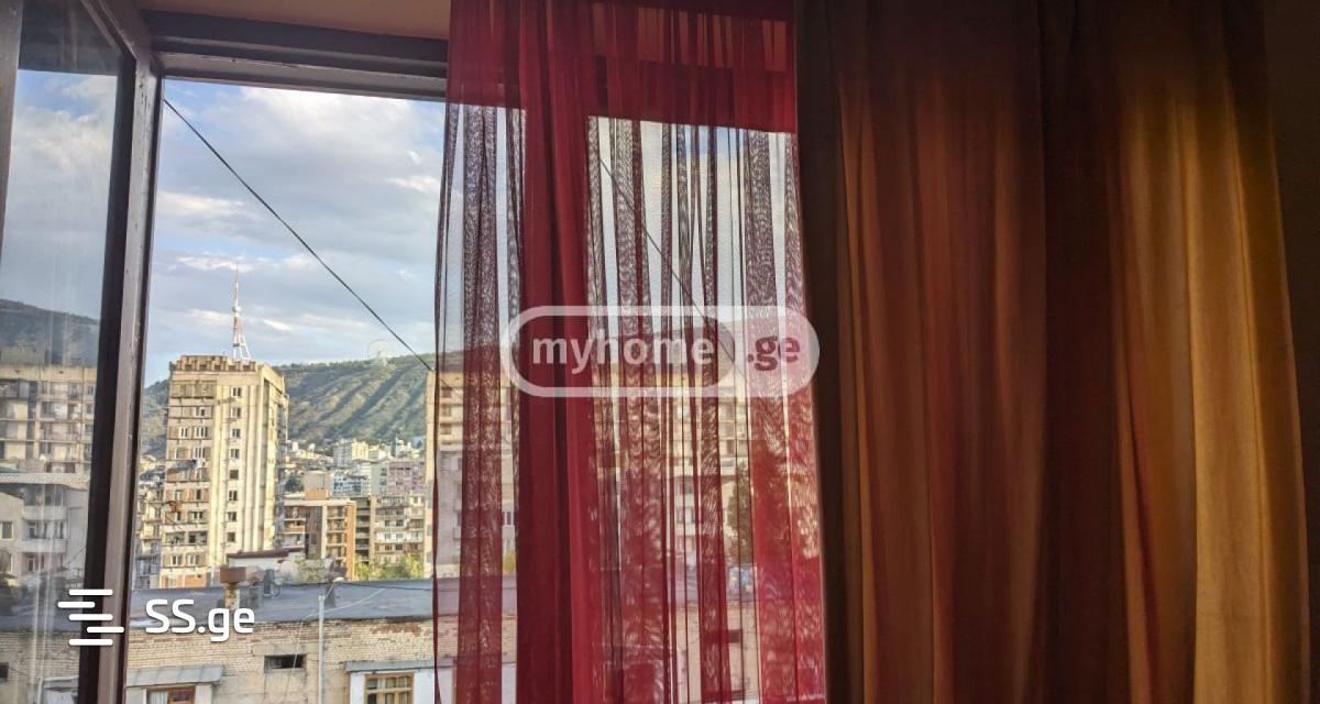 იყიდება სტუდიოს ტიპის მყუდრო მზიანი სამხრეთის ბინა, ხედით მთაწმინდაზე. ჩაშენებული სამზარეულოთი და ცენტრალური გათბობით. რკინის კარით. კომფორტულია სტუდენტებისთვის, ერთი ადამიანისთვის ან პატარა ოჯახისთვის. აივნის ნახევარი ამოშენებულია სამზარეულოსთვის, მეორე ნახევარი ღიად აქვს შენარჩუნებული. აქვს დამატებით ბინის თავზე სხვენის პრივატიზების პერსპექტივა. მუშაობს ახალი ლიფტი. იქვეა კარფური, გუდვილი, ნიკორა, ფიქსფრაისი და ა.შ. ფანჯრები ხის. საჭიროებს კოსმეტიკურ განახლებას. თუმცა საცხოვრებლად სასიამოვნო და კომფირტულია.