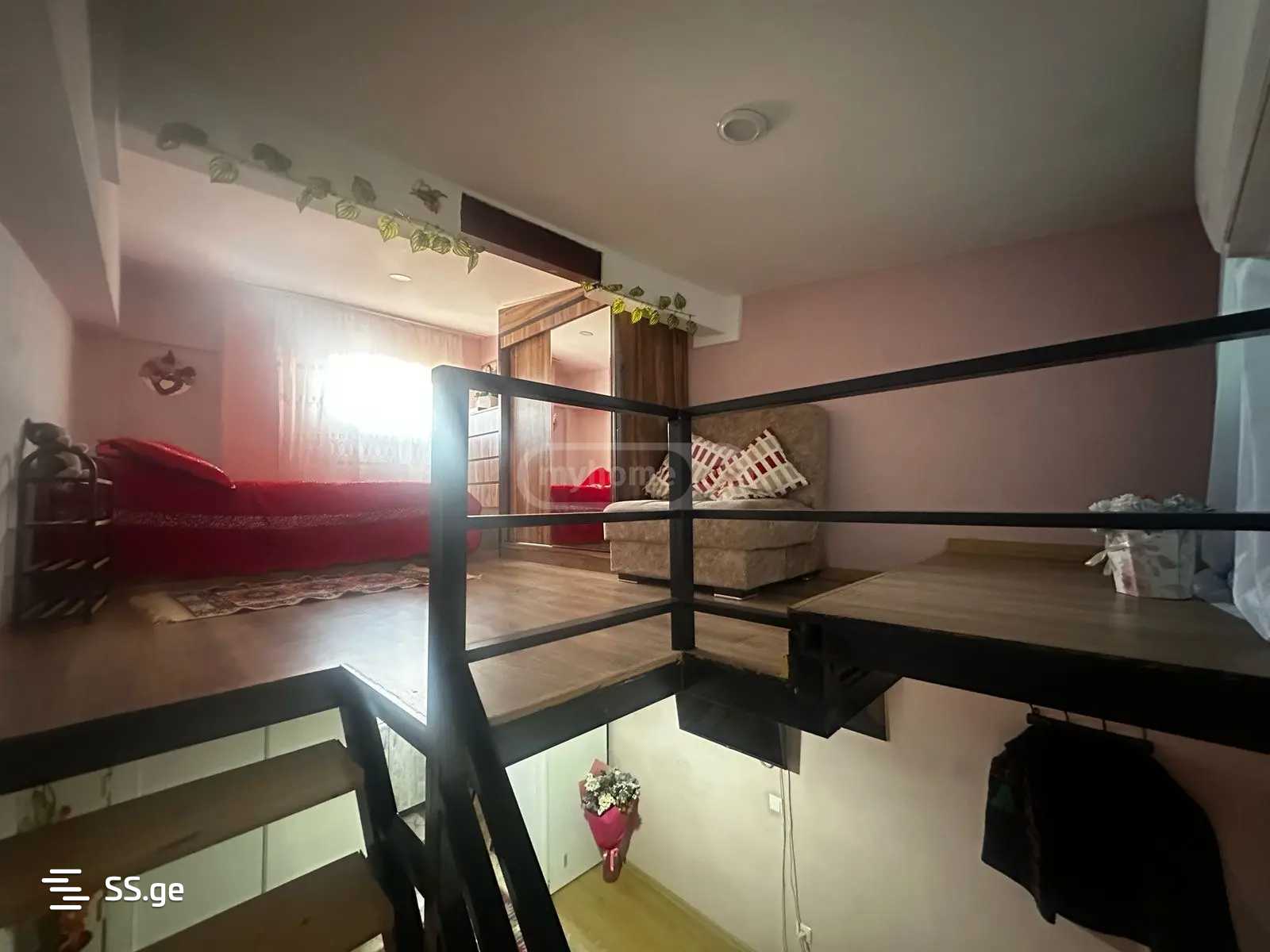 ბინა არის 20კვ.მ ანტრესოლით, პატარა სველი წერტილით, მისაღები ოთახით და სამზარეულოთი.