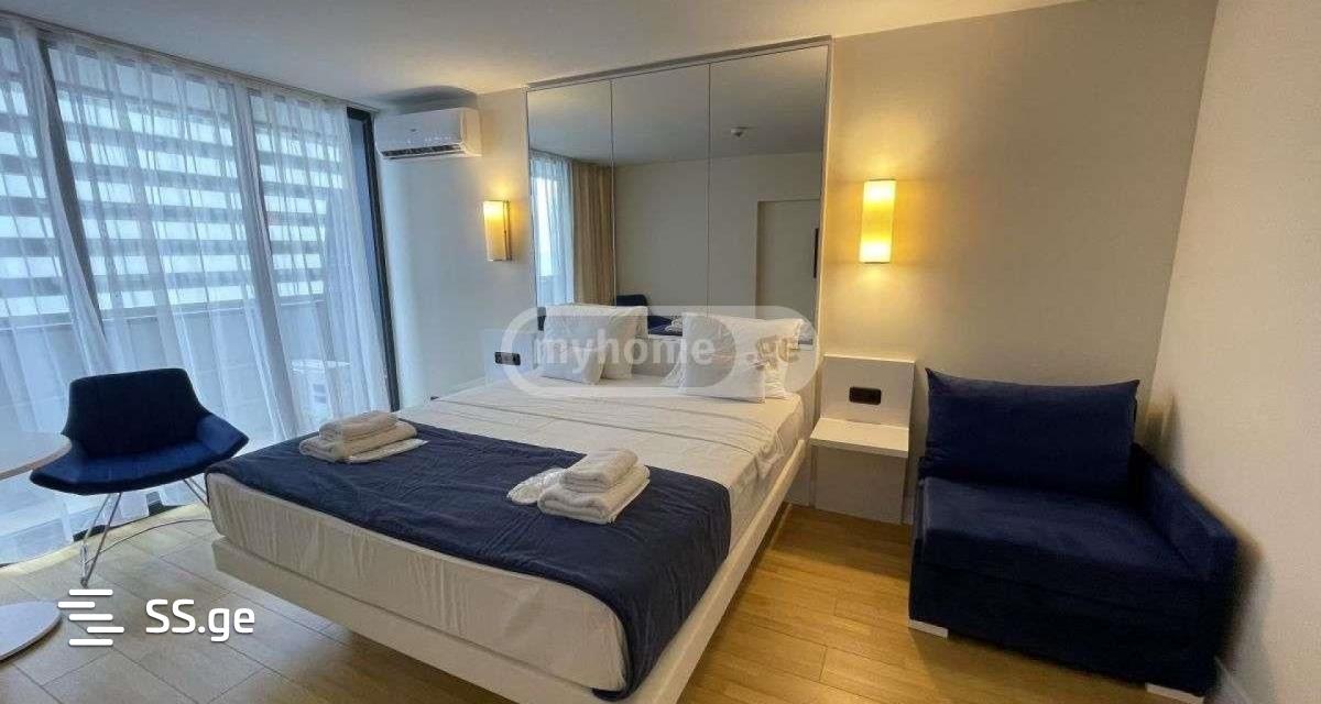 ორბი სითი c ბლოკში იყიდება სტუდიოს სტილის აპარტამენტი ზღვის ხედით, დიდი აივნით, კომდენციონერით ,მიკრო ტალღური ღუმელით, სარეცხი მანქანითბინაში არის ჭურჭელი, უფასო wifi