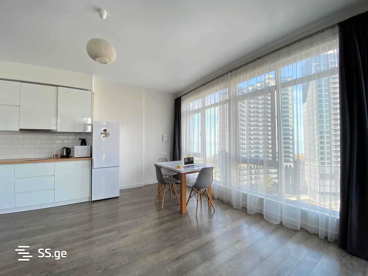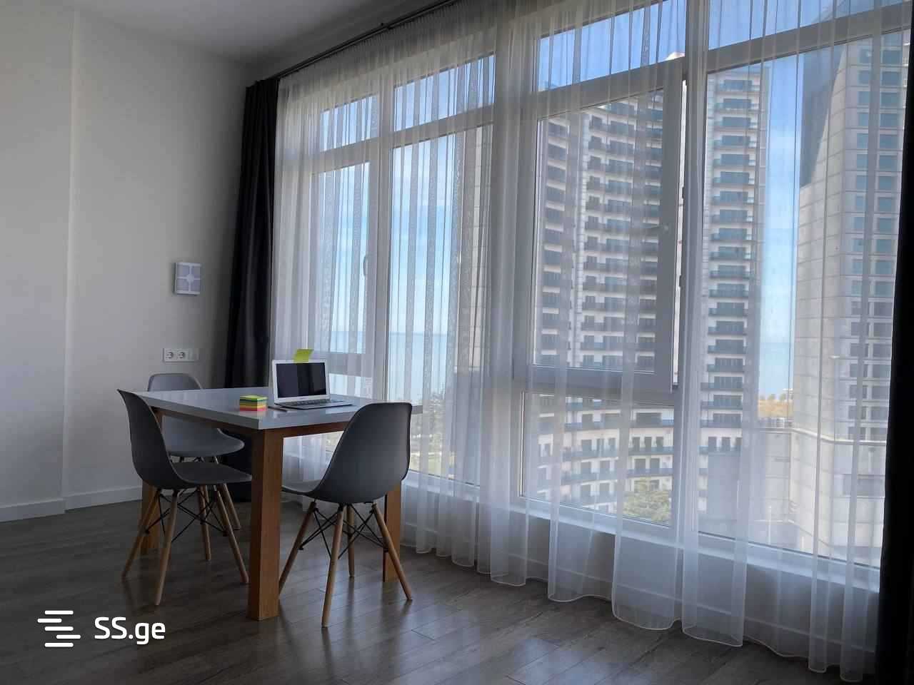 იყიდება ბინა თეთრი იალქნები B ბლოკში. ბინას აქვს თანამედროვე კონდიცირების სისტემა, არის სრულად კეთილმოწყობილი და აღჭურვილი ტექნიკით. ბინას აქვს პირდაპირი ხედი პარკზე და ზღვაზე, რომელიც მდებარეობს გზის გადაღმა. კომპლექსს აქვს გაცხელებული საცურაო აუზი და განვითარებული ინფრასტრუქტურა.