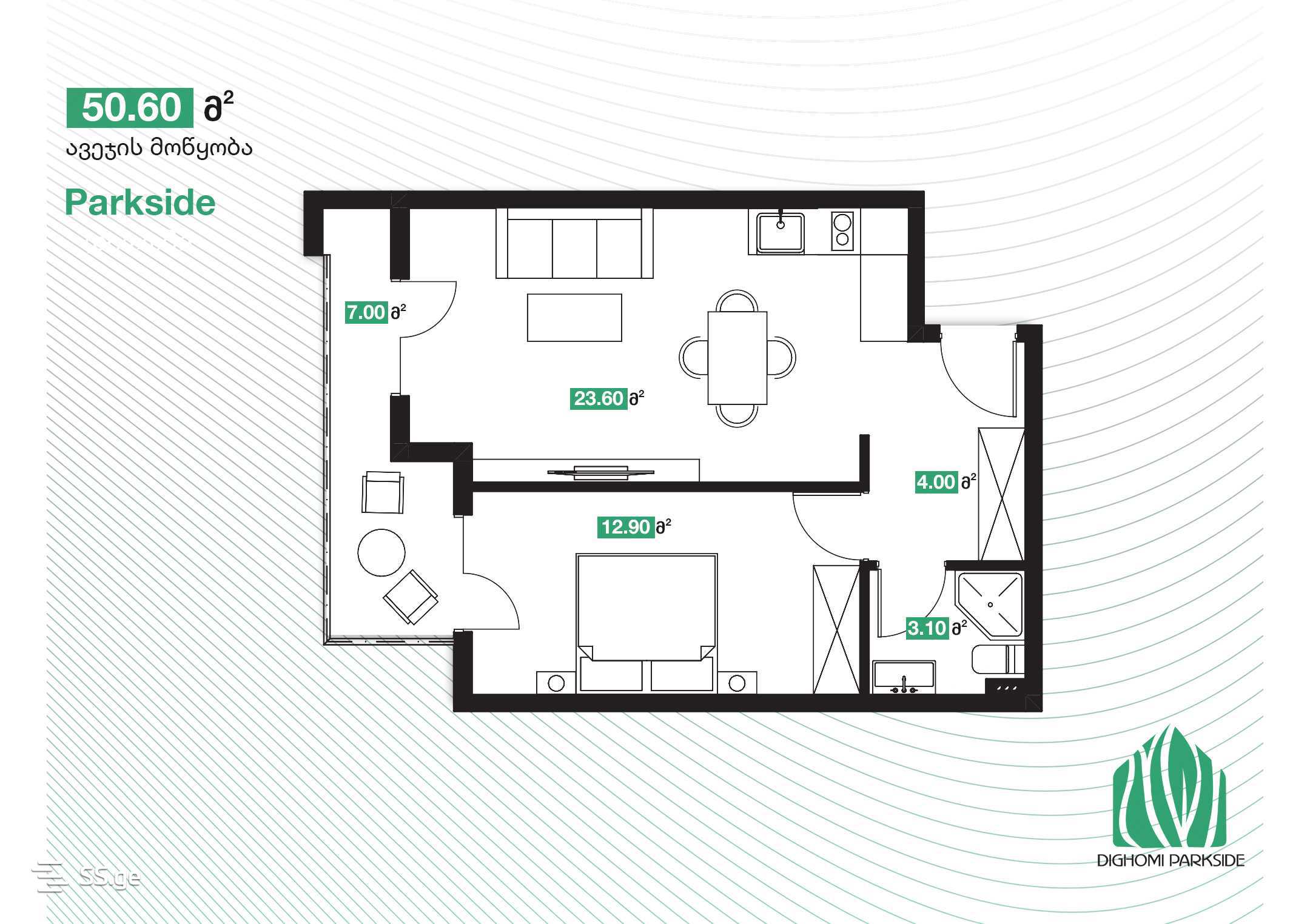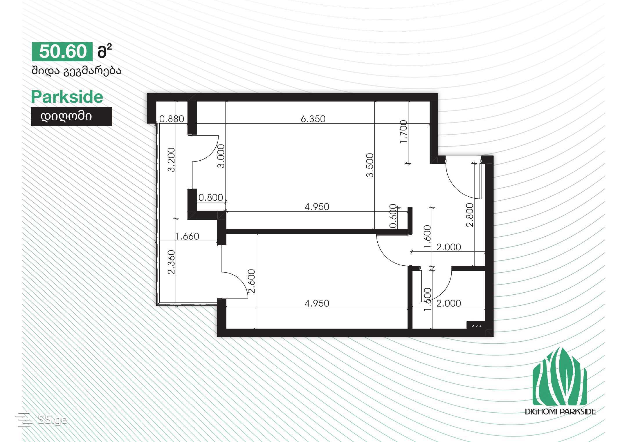 50.6 მ²ოთახი