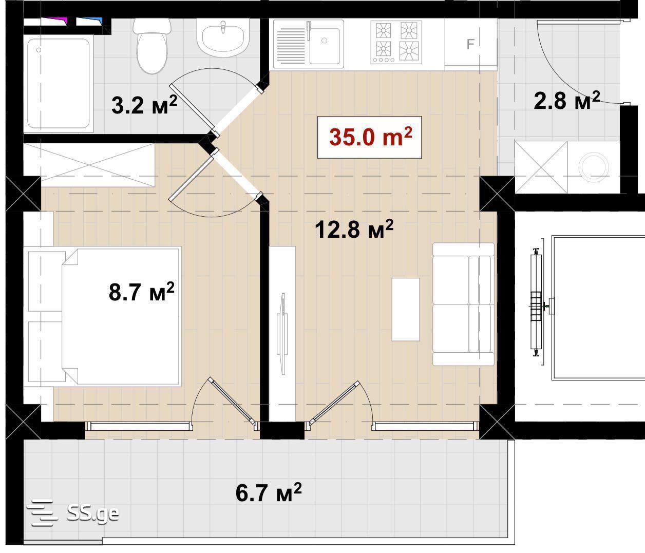 35 მ²ოთახი