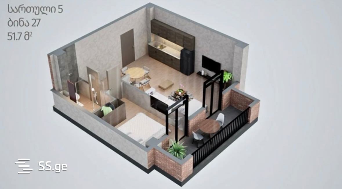 51.7 მ²ოთახი