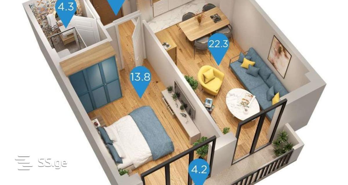 47.6 მ²ოთახი