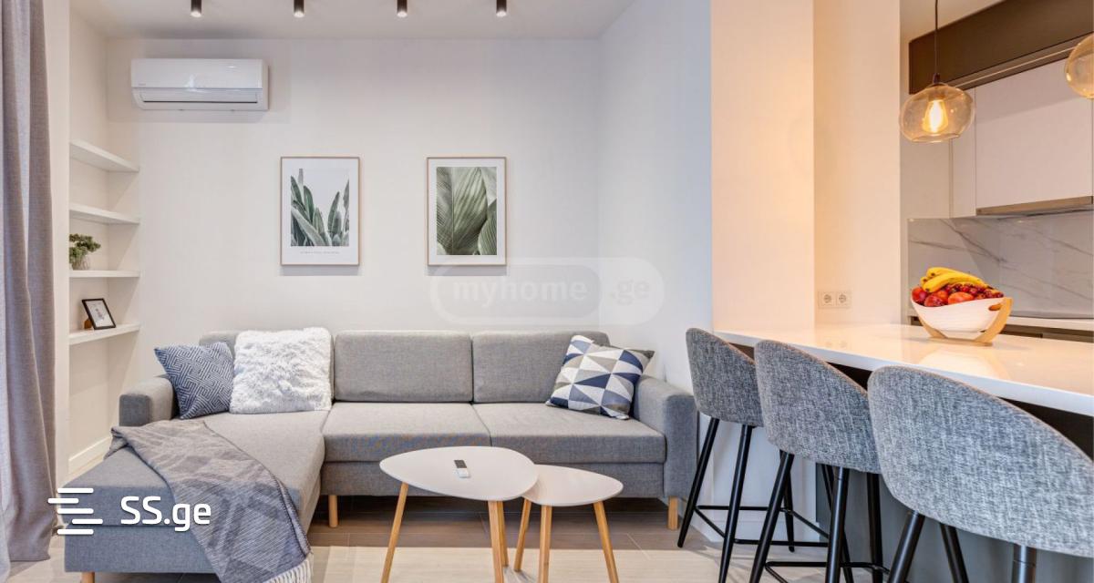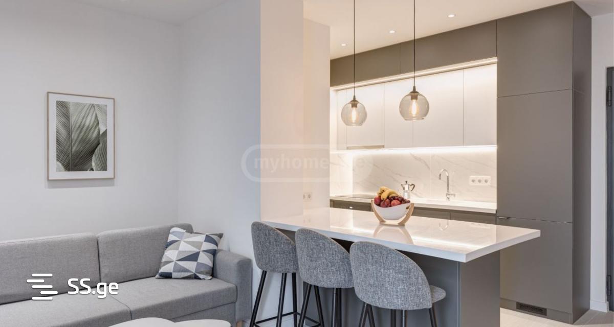 ეს ახალგარემონტებული 2ოთახიანი ბინა მდებარეობს თბილისში, დიღმის მასივში. ბინა განთავსებულია მშვიდ უბანში. ბინა ქალაქის ცენტრიდან 15 წუთის სავალზე (ავტომობილით) მდებარეობს. ფეხით სავალ მანძილზე ნახავთ უამრავ რესტორნებსა და სასურსათო მაღაზიებს, როგორიცაა კარფური ბელიაშვილზე ან თბილისი მოლი. ბინა მდებარეობს მე6 სართულზე. შეგიძლიათ ისარგებლოთ ლიფტით. ტერასიდან შესაძლებელია ქალაქისა და მთების შესანიშნავი ხედის დათვალიერება. მისაღები ოთახი, ბინის შუაგულში, აღჭურვილია ღია სამზარეულოთი, რომელიც ქმნის ცენტრალურ ადგილს დასვენებისა და სოციალიზაციისთვის. თუკი პროექტორს იყენებთ ღამით ან როცა ოთახი ჩაბნელებულია, შეგიძლიათ უყუროთ ფილმს თქვენი საკუთარი Netflixის ანგარიშიდან და ისიამოვნოთ კინოთეატრის ატმოსფეროთი. სრულად აღჭურვილი სამზარეულო საშუალებას გაძლევთ მარტივად მოამზადოთ კერძები. სამზარეულო აღჭურვილია გამწოვით, ჭურჭლის მანქანით, ელექტრო გაზქურით, ჭურჭლით და ა. შ. თქვენი კომფორტის უზრუნველსაყოფად ბინაში არის კონდიციონერი და იატაკქვეშა გათბობ