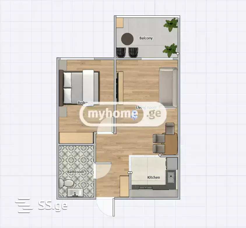 ბინაში არის სამზარეულო და ნაწილობრივ ავეჯიც.