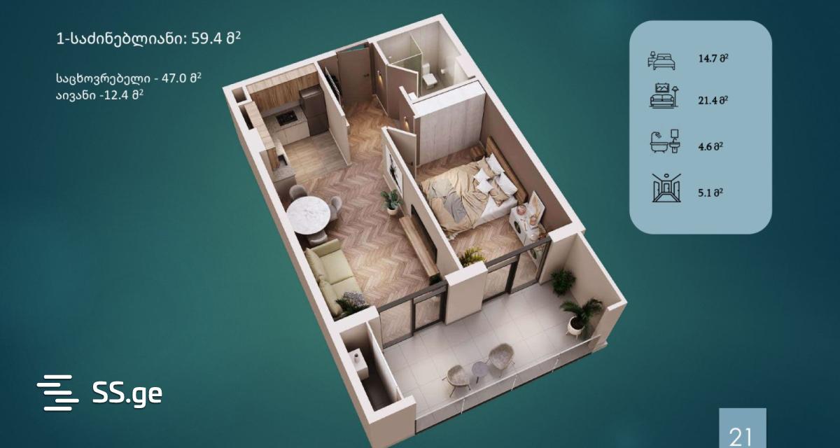 58.2 მ²ოთახი