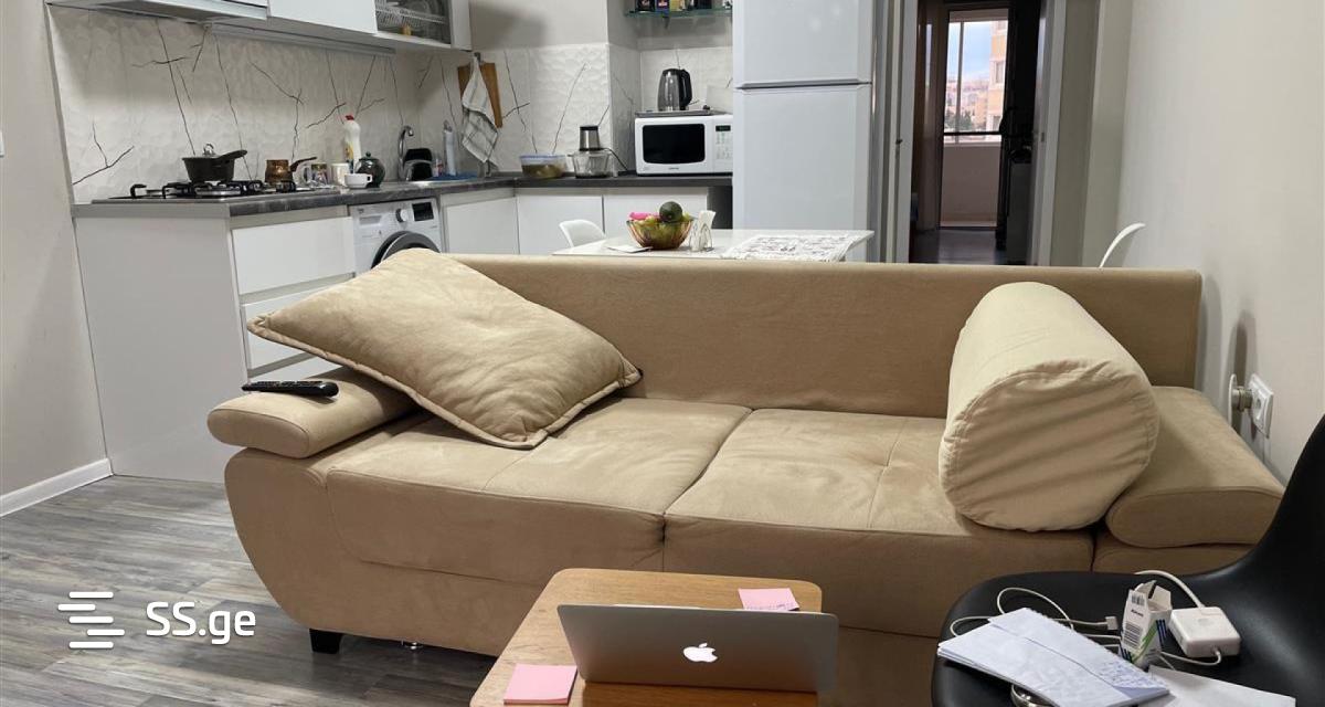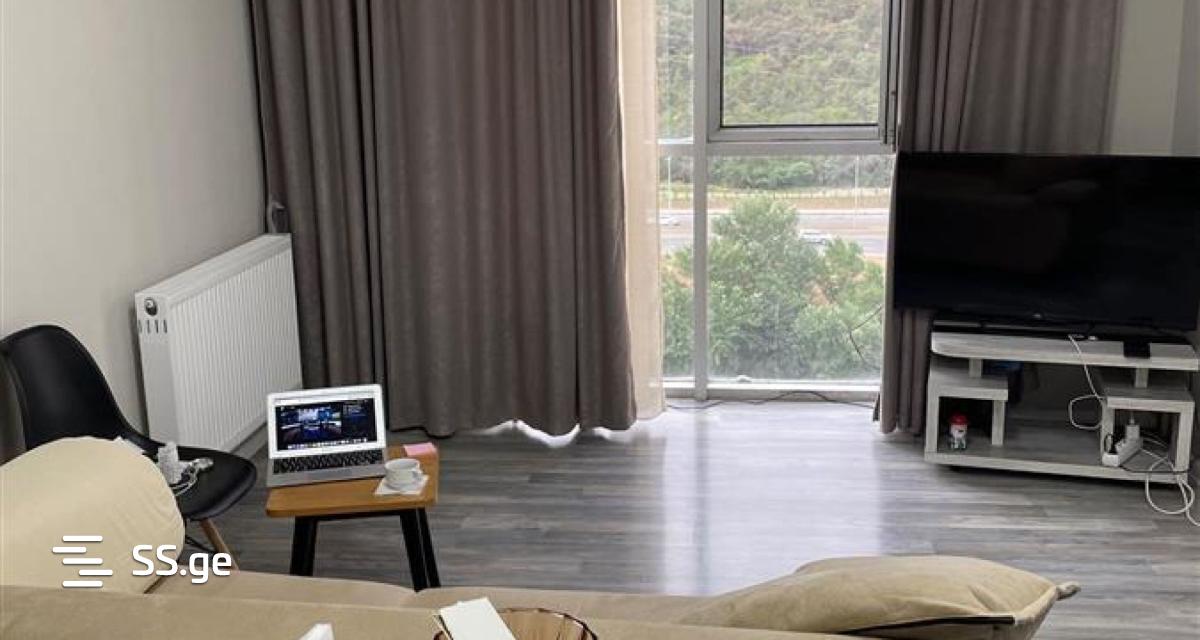 დირსის თანამედროვე საცხოვრებელ კომპლექსში 2 ოთახიანი კარგად გარემონტებული ბინა (ხედები ორ მხარეს :მდინარეზე,ახალ პარკზე,მთებზე და ქალაქზე)ახალი ავეჯით და კარგი ტექნიკით. ვიდეოთვალთვალი, დასუფთავების სერვიზი. სპორტული მოედნები, ველობილიკები, სასეირნო ბულვარი, ბავშთა და დიდებისთვის იმფრასტრუქტურა, კაფეები და ქსელური მაღაზიები.