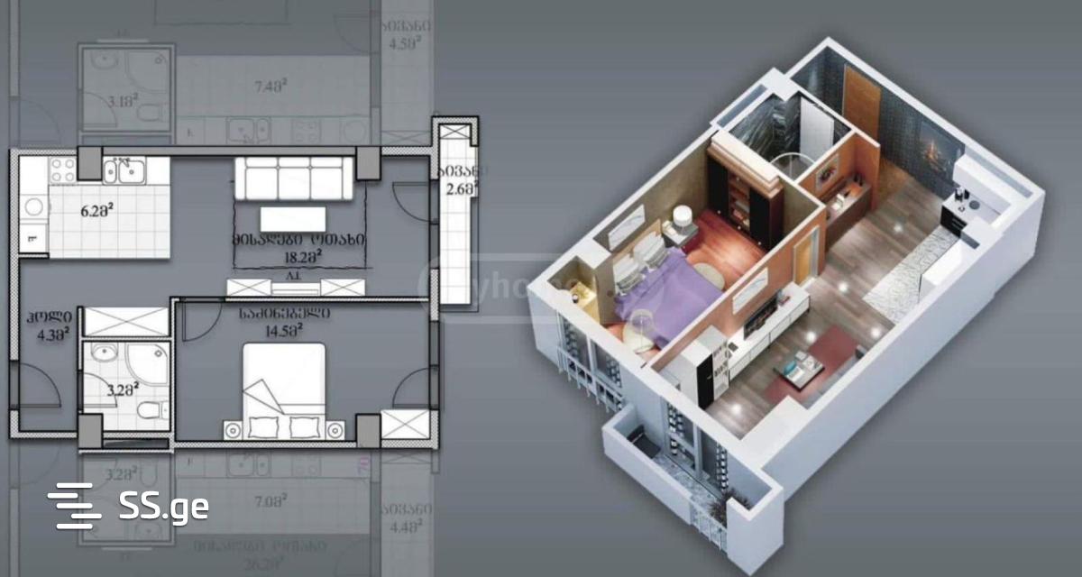 50.1 მ²ოთახი