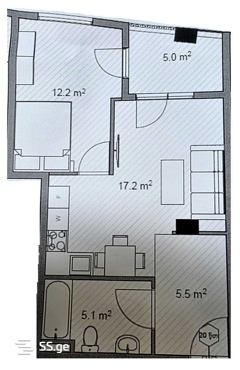 49.1 მ²ოთახი