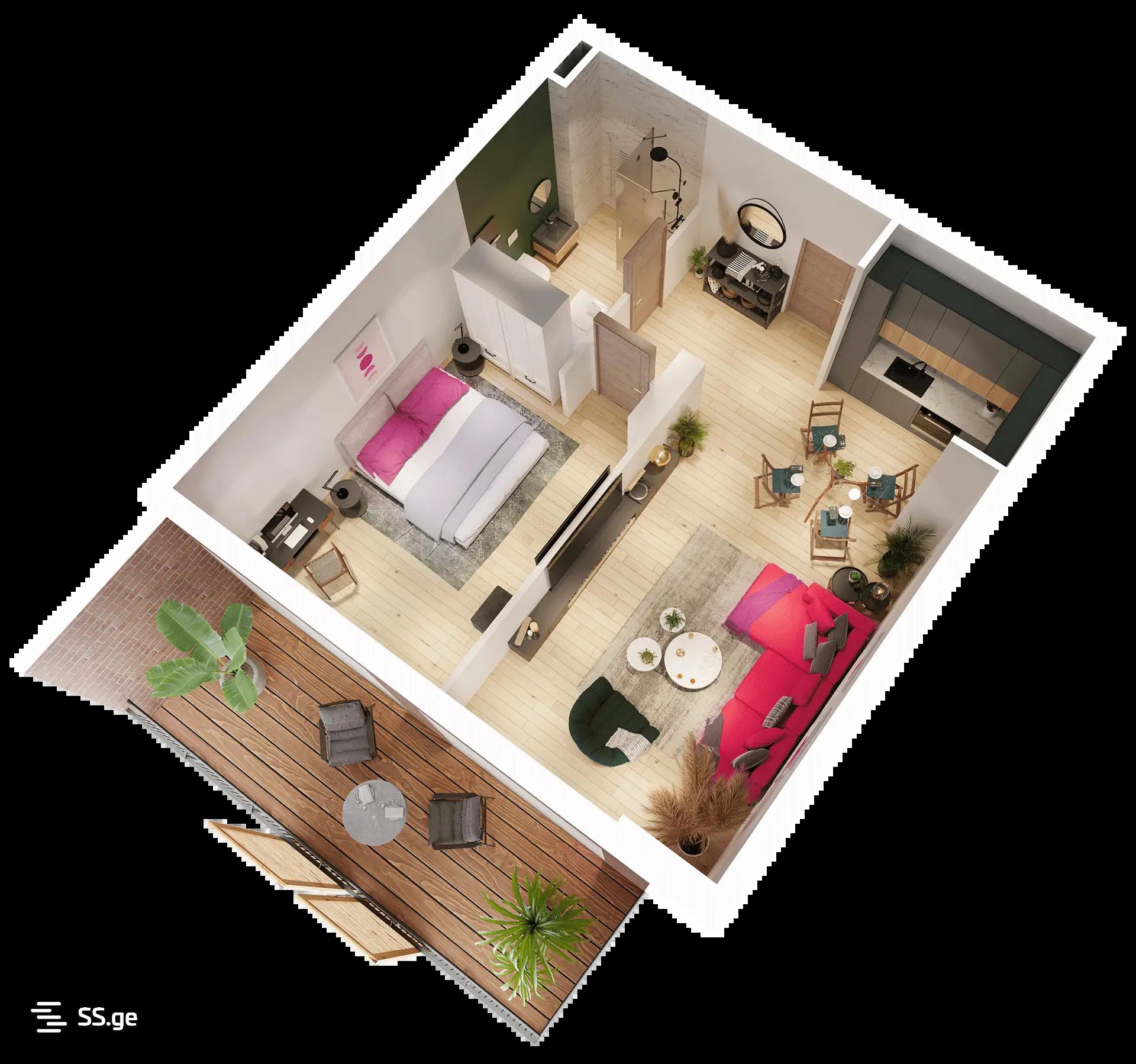 სრული ფართი: 75კვ1.ჰოლი 6.2კვ2.სასტუმრო ოთახი და სამზარეულო 28კვ3.საძინებელი 18.6კვ4.სველი წერტილი 5.3კვ5.ვერანდა 15.6კვფასი 1500$1900$სართული 220დასრულებამდე 560 დღე (2026 წელი)საგაზაფხულო განწყობას ინტერიერში მხატვარ მაია აბაშიძის ფერადი ნამუშევრები შექმნის,რომლებიც კომპლექსის საერთო სივრცეების კედლებს დაამშვენებსრეკრეაციული სივრცე რომელიც 4000 კვ.მ. ფართობზეა გაშლილი და სხვადასხვა გასართობ,თუ მოსასვენებელ კუთხეს მოიცავს; ეზოში, ბავშვებისთვის შემოქმედებითი ბაღი მოეწყობა.პარკირება 1 სართულზე 21000$ 2 სართულზე 18000$
