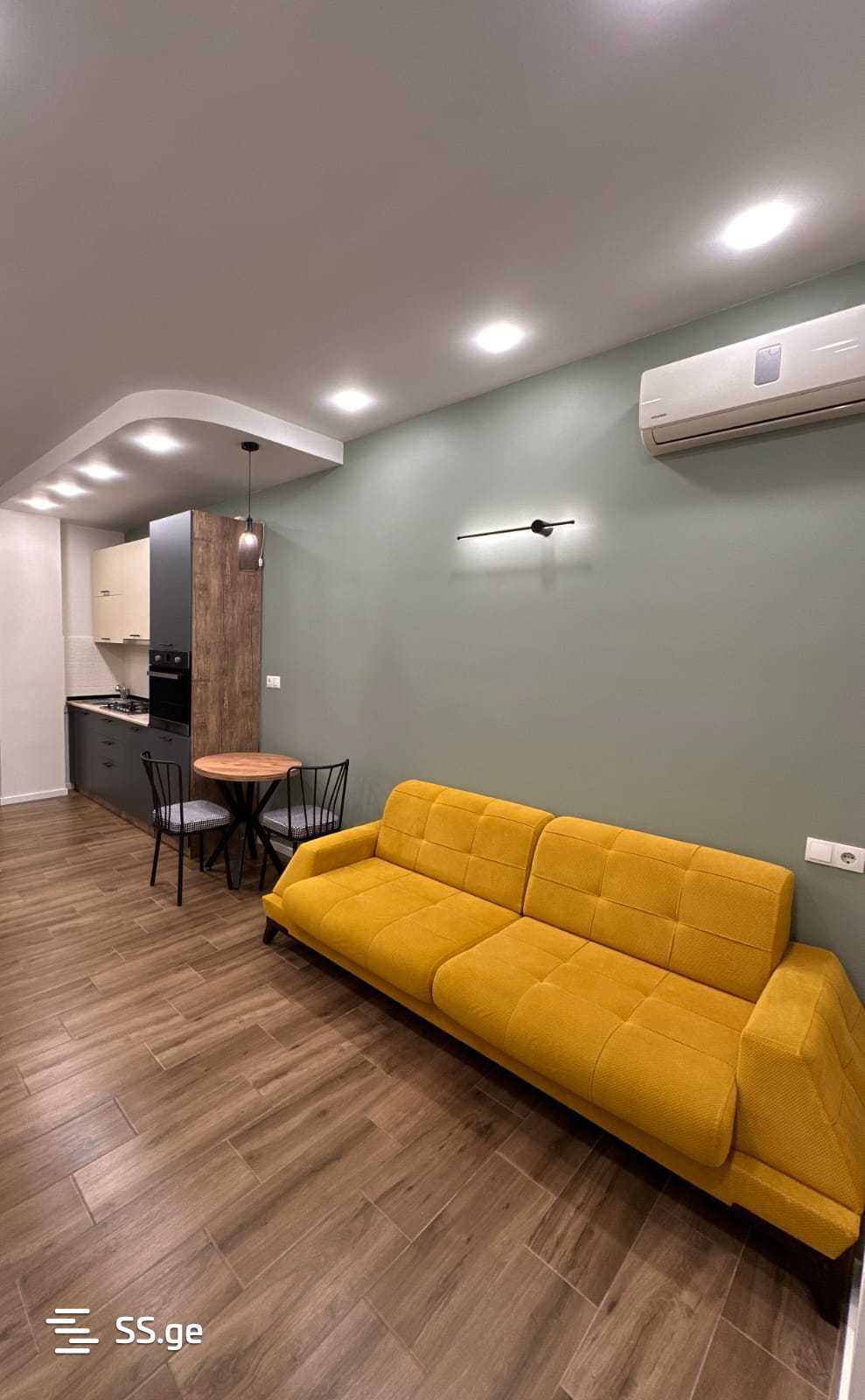 იყიდება ახალ აშენებულ კორპუსში არასანდარტული 2 ოთახიანი ბინა.სტუდიოს ტიპის მისაღებით და სამზარეულოთი,1 იზოლირებული საძინებლით,1 სველი წერტილით.ბინაში რჩება ავეჯი და ტექნიკა