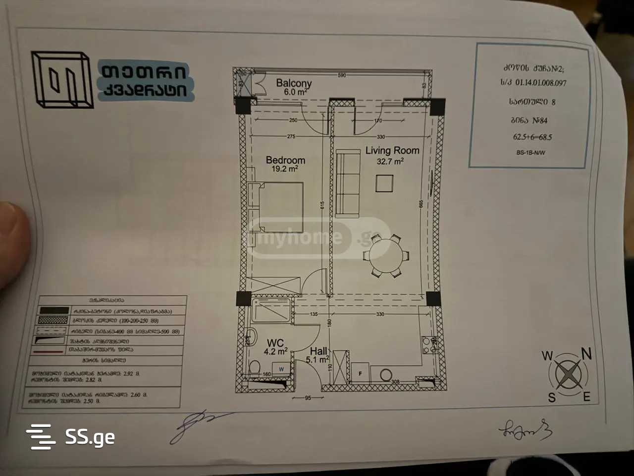 იყიდება სახლი თეთრი კვადრატის კომპლექსში მინდელზე. ბინა მდებარეობს კომპლექსის პირველ კორპუსში, რომელიც სრულდება 2025 წლის სექტემბერში. სრული ფართია 68.5 კვმ აქედან საძინებელი 19.2 კვმ, მისაღები/სამზარეულო 32.7, სველი წერტილი 4.2 კვმ, ჰოლი 5.1 კვმ, აივანი 8კვმ. ბინა ბარდება თეთრი კარკასის მდგომარეობით.