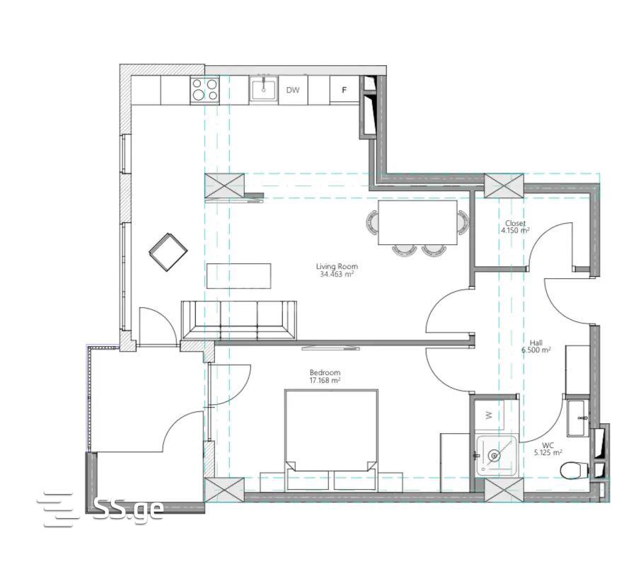 75.1 მ²ოთახი