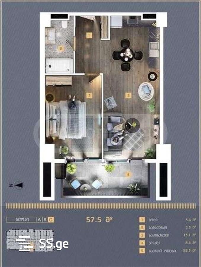 57.50 მ²ოთახი