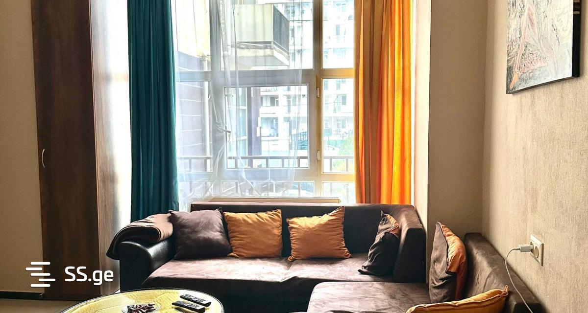 იყიდება ოროთახიანი ბინა, სტუდიოს ტიპის მისაღებით, ერთი საძინებლითა და ერთი სველი წერტილით. რჩება ავეჯი და ტექნიკა. ბინა გამოდგება როგორც საცხოვრებლად, ისე გასაქირავებლად და საოფისედაც. შეძენის დღიდან გაქირავებულია. სადარბაზოს კარს აქვს დომოფონი. ეზოში არის სტადიონი, მაღაზიები.