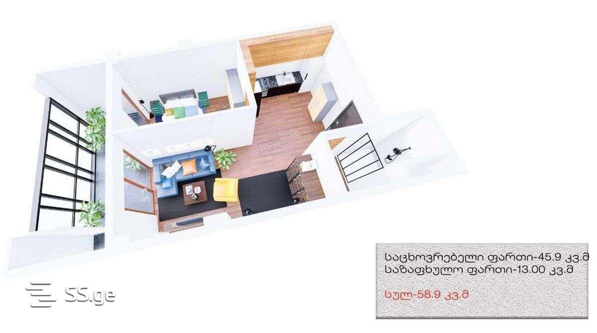 იყიდება 2 ოთახიანი ბინა სამგორში