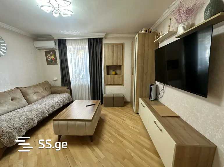 აქვს იზოლირებული სამზარეული და სველი წერტილები. რჩება ყველაფერი რაც ფოტოშია. ავეჯი და ტექნიკა(წვრილი ტექნიკის გარდა) კორპუსი არის არასტანდარტული კალიდორული სისტეკით